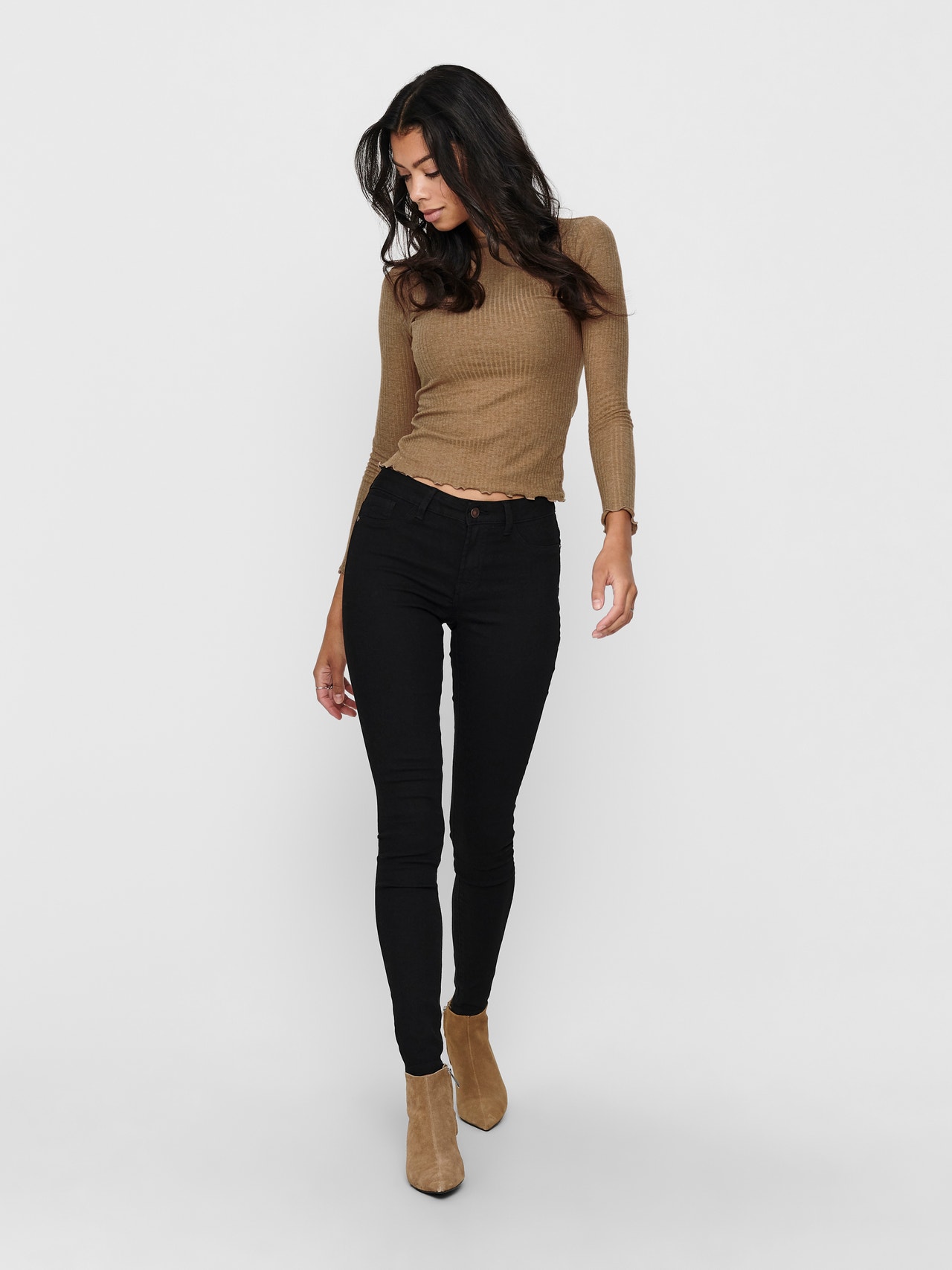 Doplňte svůj šatník stylovými základními kousky, jako jsou trička a topy, které snadno sladíte se stávajícími kousky. - Typ výrobku : Top - Výstřih : Vysoký výstřih - Rukáv : Dlouhé rukávy - Extra detaily : Volánky - Střih : Comfort Fit
