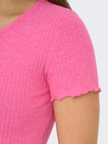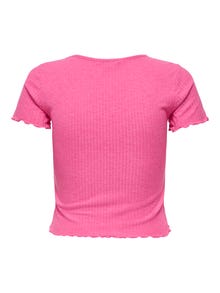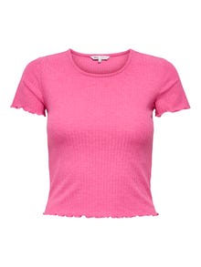 Oblečte se co nejlépe do školy, do práce i na každodenní aktivity do skvělých modelů, které snadno sladíte se svými oblíbenými kousky. - Typ výrobku : Top - Výstřih : Kulatý výstřih - Rukáv : Krátké rukávy - Délka/velikost : Oříznuté - Extra detaily : Volánky - Střih : Regular Fit