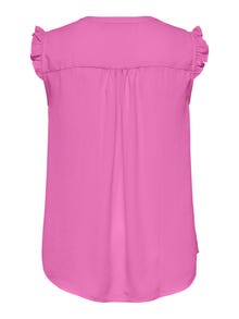 Oblečte se co nejlépe do školy, do práce i na každodenní aktivity do skvělých modelů, které snadno sladíte se svými oblíbenými kousky. - Typ výrobku : Top - Výstřih : Výstřih do V - Rukáv : Bez rukávů - Extra detaily : Volánky - Střih : Regular Fit