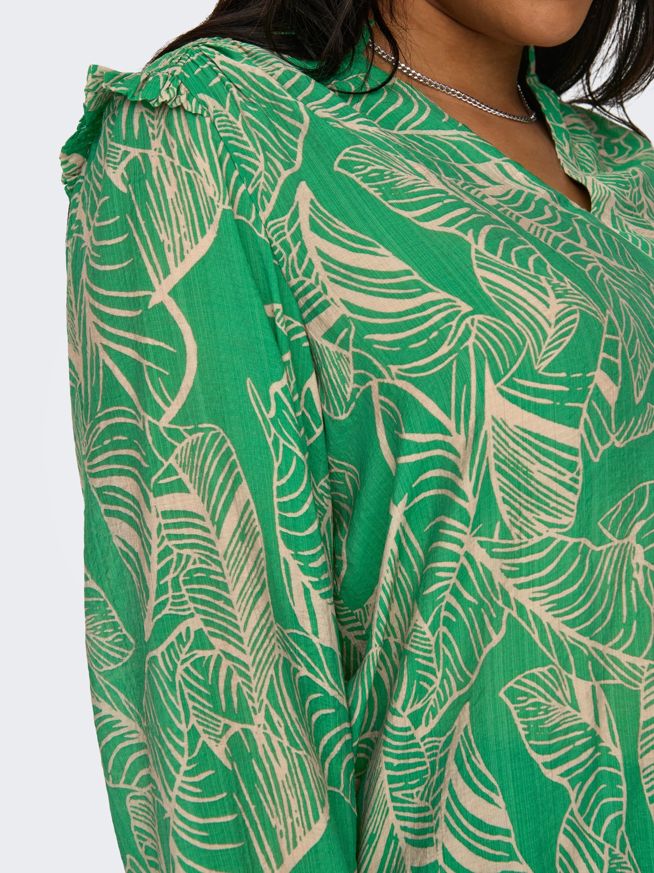 Doplňte svůj šatník stylovými základními kousky, jako jsou trička a topy, které snadno sladíte se stávajícími kousky. ONLY CARMAKOMA je mezinárodní módní značka pro ženy s křivkami velikosti 42-54. Vytváří modely, které zdůrazňují všechny přednosti krásné ženské siluety s křivkami, abyste vypadaly úžasně po celý den, každý den. - Typ výrobku : Top - Výstřih : Výstřih do V - Rukáv : Dlouhé rukávy - Rukávy : Objemové rukávy - Manžety : Elastické manžety - Extra detaily : Volánky - Střih : Regular Fit