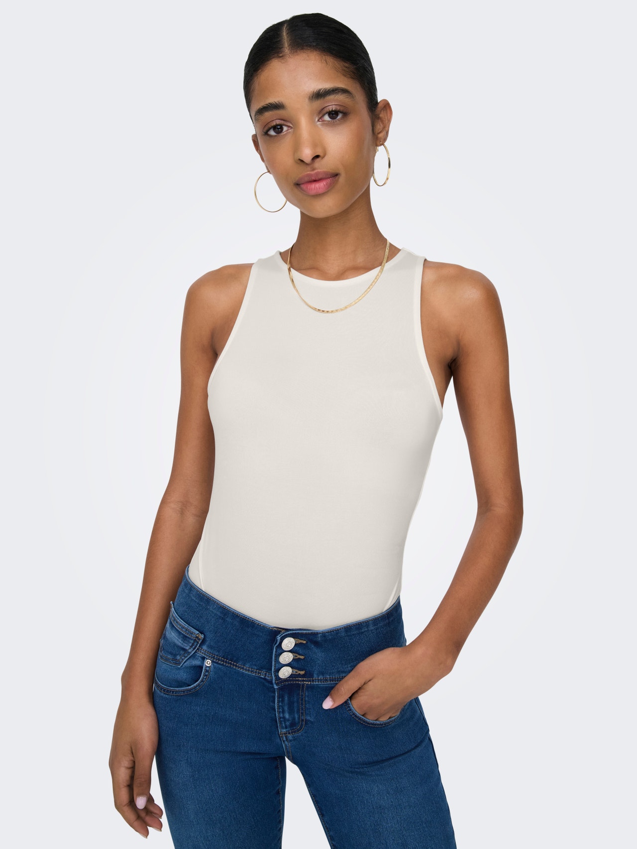 Žádný šatník není kompletní bez jemných nadčasových základních modelů, které se hodí pro každou příležitost a každé roční období. - Typ výrobku : Body - Výstřih : Kulatý výstřih - Rukáv : Bez rukávů - Zavírání : Zapínání na knoflíky