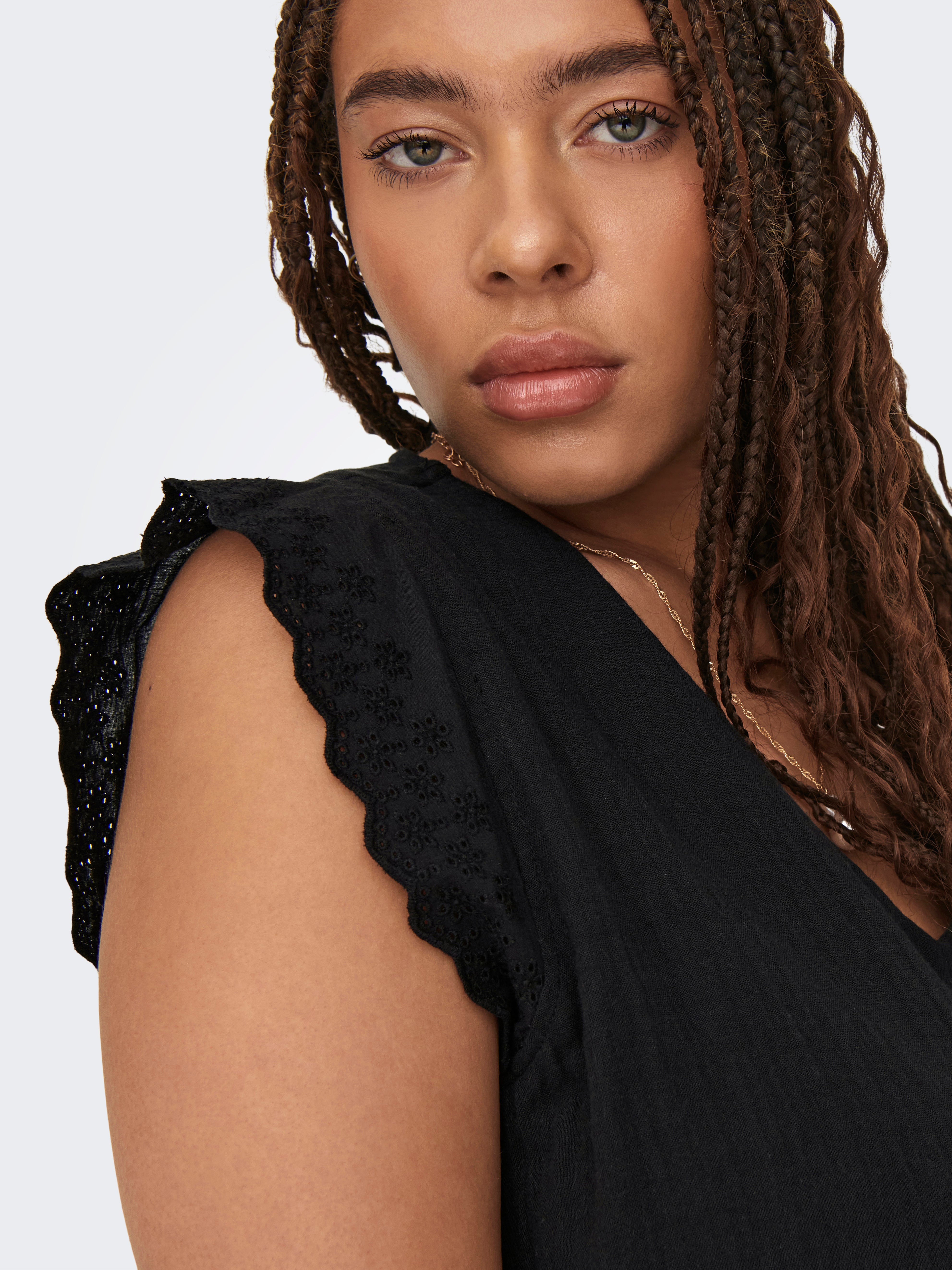 Ve vteřině změňte svůj každodenní outfit přidáním ženského topu a vytvořte tak jemný a čistý výraz.