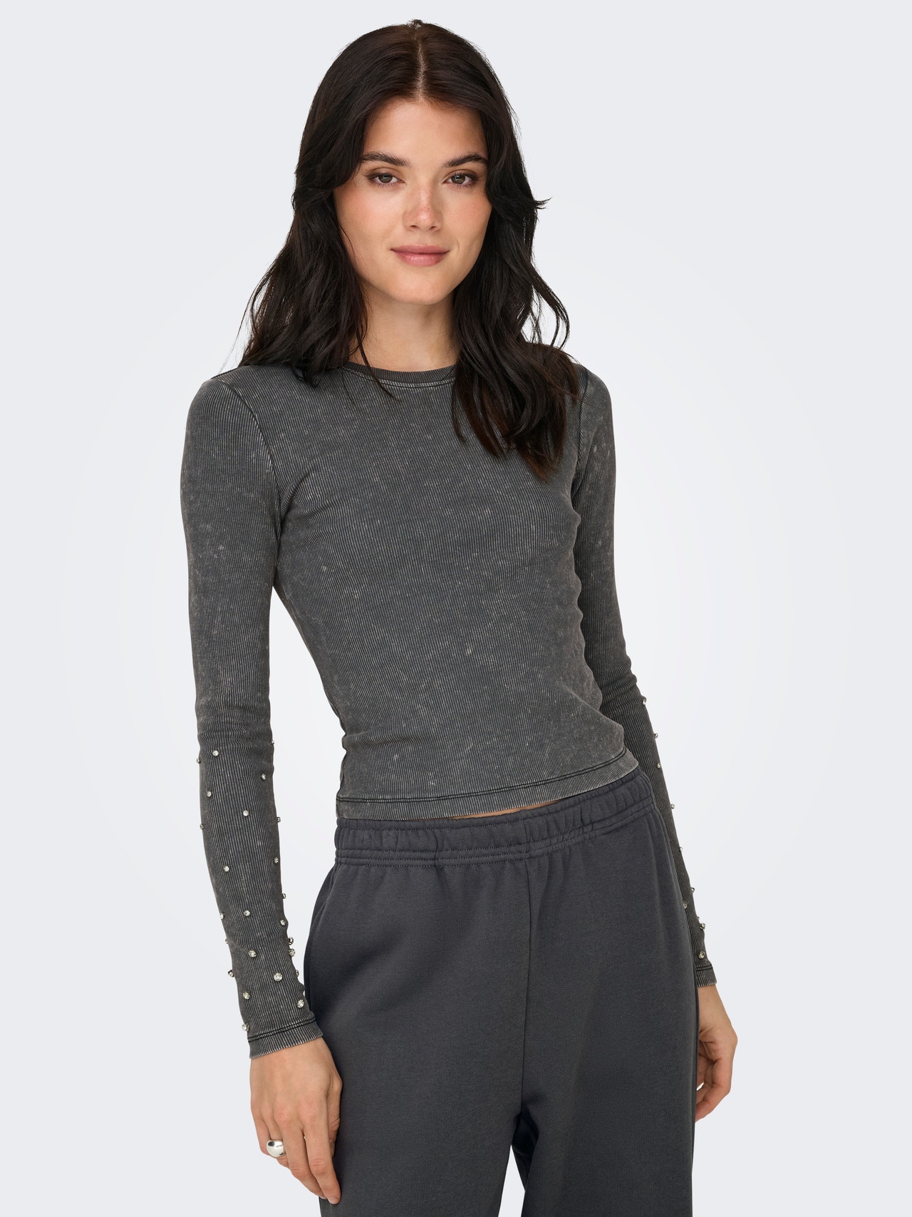 Oblečte se co nejlépe do školy, do práce i na každodenní aktivity do skvělých modelů, které snadno sladíte se svými oblíbenými kousky. Bavlna je vyrobena z přírodních vláken a vytváří měkkou a prodyšnou tkaninu. - Typ výrobku : Tričko - Výstřih : Kulatý výstřih - Rukáv : Dlouhé rukávy - Extra detaily : Štrasové kameny, Detail se žebrem - Střih : Regular Fit