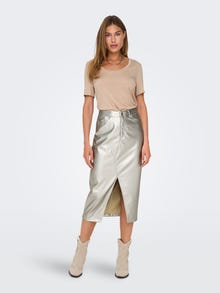 Vyjádřete svůj osobitý styl v parádní sukni, která se hodí do práce, do společnosti i do města. - Typ výrobku : Sukně ze syntetické kůže - Zavírání : Zapínání na knoflík a zip - Kapsy : Kapsy na zadní straně - Pas : Vysoký pas - Délka/velikost : Midi délka - Extra detaily : Poutka na opasek, Přední rozparek