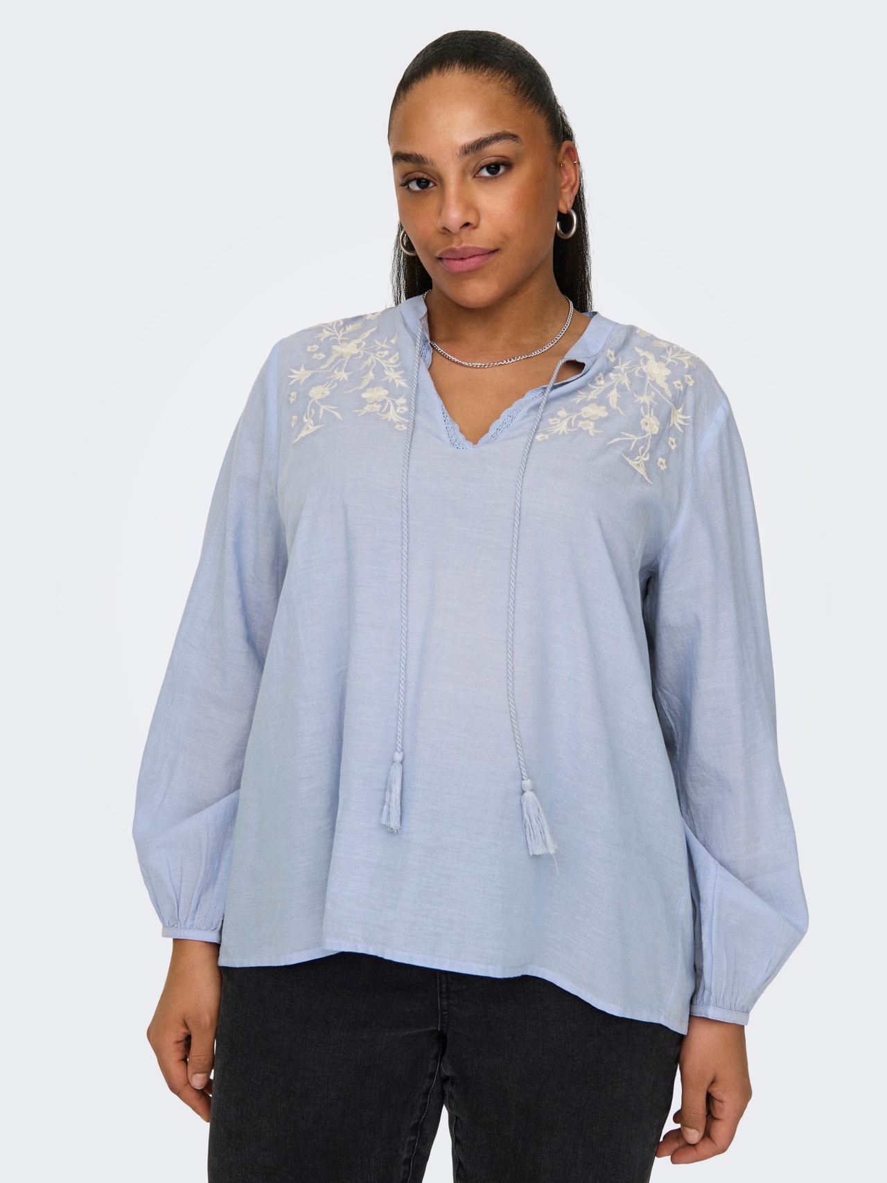 ONLY CARMAKOMA je mezinárodní módní značka pro ženy s křivkami velikosti 42-54. Vytváří modely, které zdůrazňují všechny přednosti krásné ženské siluety s křivkami, abyste vypadaly úžasně po celý den, každý den. Modely Curve jsou navrženy tak, aby vyhovovaly postavám s ženskými křivkami. - Typ výrobku : Top - Neck : Výstřih do V - Rukáv : Dlouhé rukávy - Manžety : Elastické manžety - Zavírání : Zapínání na šňůrku - : Plné tvary - Střih : Standard Fit
