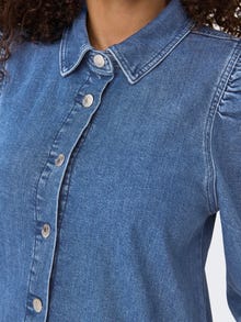 Připravte se do práce, do školy nebo na jakoukoli jinou aktivitu díky snadno kombinovatelným šatům, které se hodí pro každý den. - Typ výrobku : Džínové šaty - Výstřih : Košile s límečkem - Rukáv : Dlouhé rukávy - Rukávy : Nabírané rukávy - Manžety : Manžety na knoflíky - Zavírání : Zapínání na knoflíky - Délka/velikost : Krátké - Střih : Regular Fit