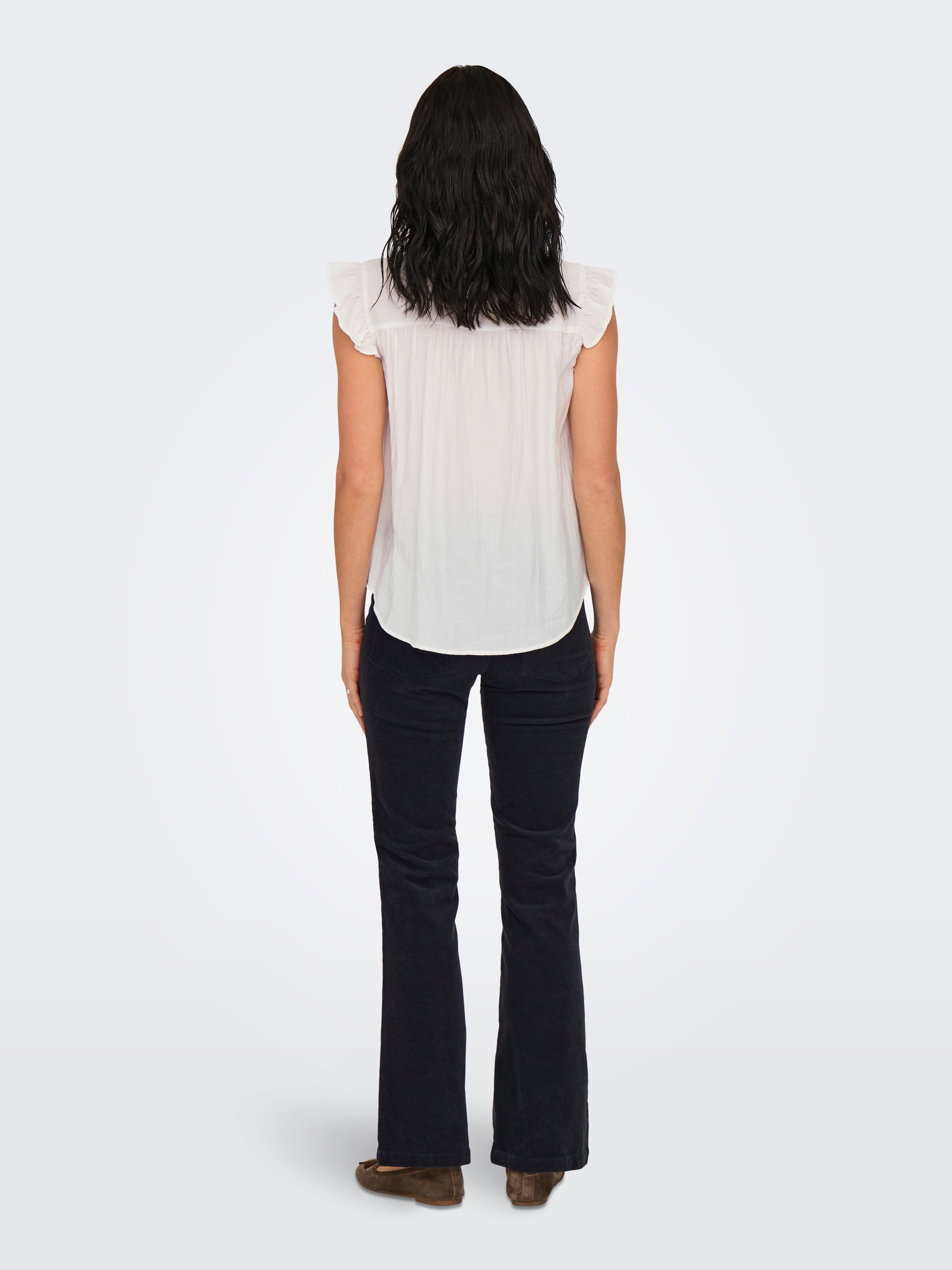 Ve vteřině změňte svůj každodenní outfit přidáním ženského topu a vytvořte tak jemný a čistý výraz.