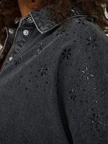 Zkombinujte své oblíbené kalhoty nebo sukni s novou džínovou košilí a vytvořte tak nadčasový outfit, nebo vyzkoušejte dvojitou džínovinu pro vytvoření módního a svěžího outfitu. Džínovina je ikonický materiál, který je dostupný v několika různých provedeních. Nejčastěji se vyznačuje pevností a diagonálním žebrováním. - Typ výrobku : Džínová košile - Výstřih : Košile s límečkem - Rukáv : 3/4 rukávy - Manžety : Široké manžety - Zavírání : Zapínání na knoflíky - Extra detaily : Detail se třpytkami, Perlová ozdoba - Střih : Oversize Fit