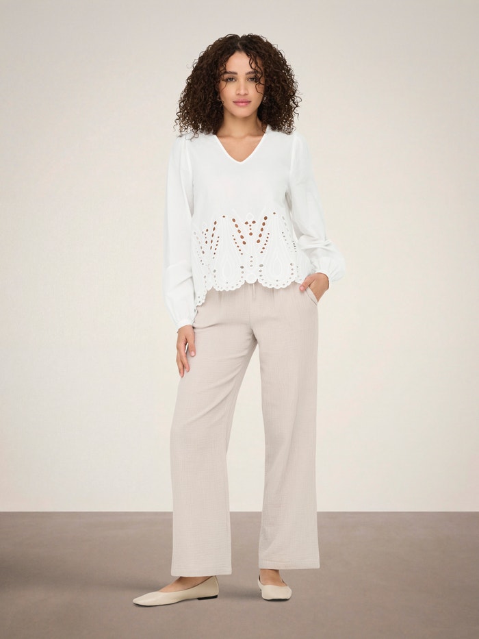 Ve vteřině změňte svůj každodenní outfit přidáním ženského topu a vytvořte tak jemný a čistý výraz.