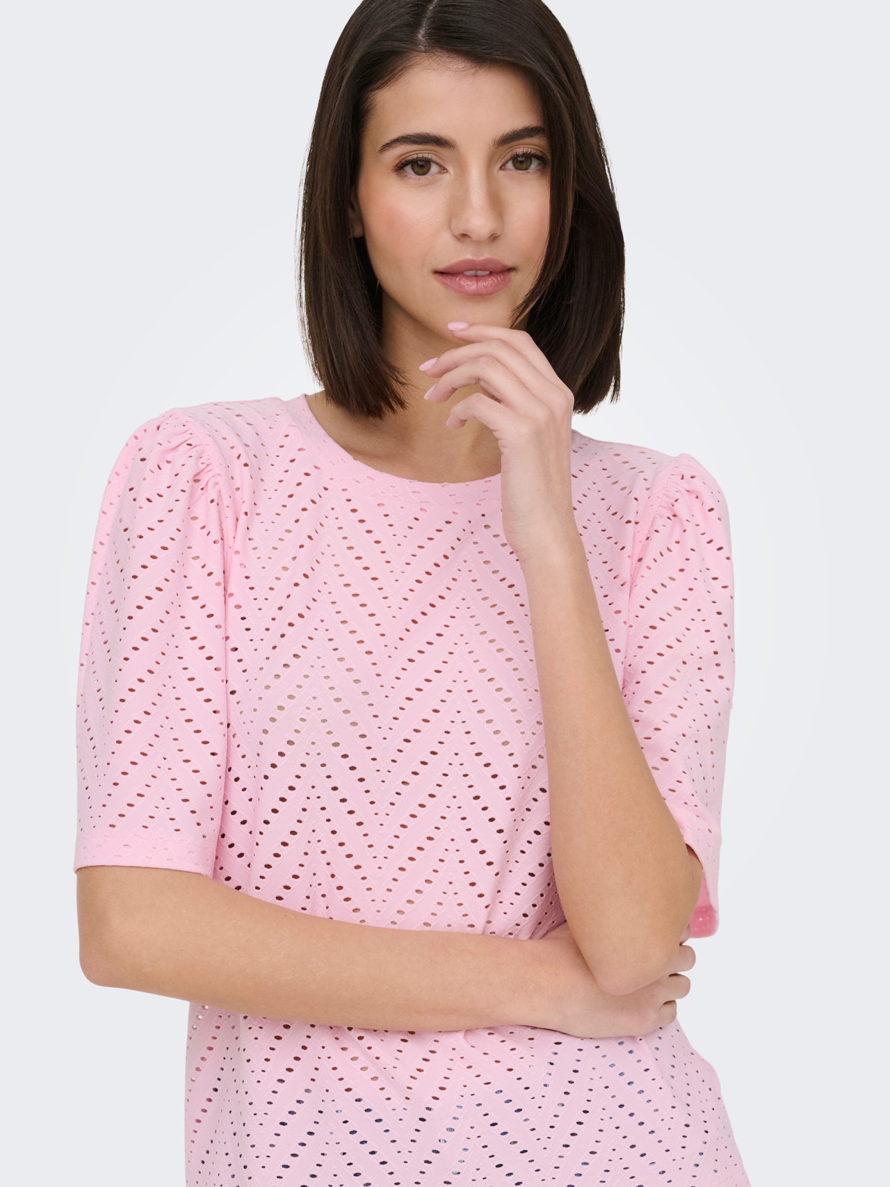 Ve vteřině změňte svůj každodenní outfit přidáním ženského topu a vytvořte tak jemný a čistý výraz.