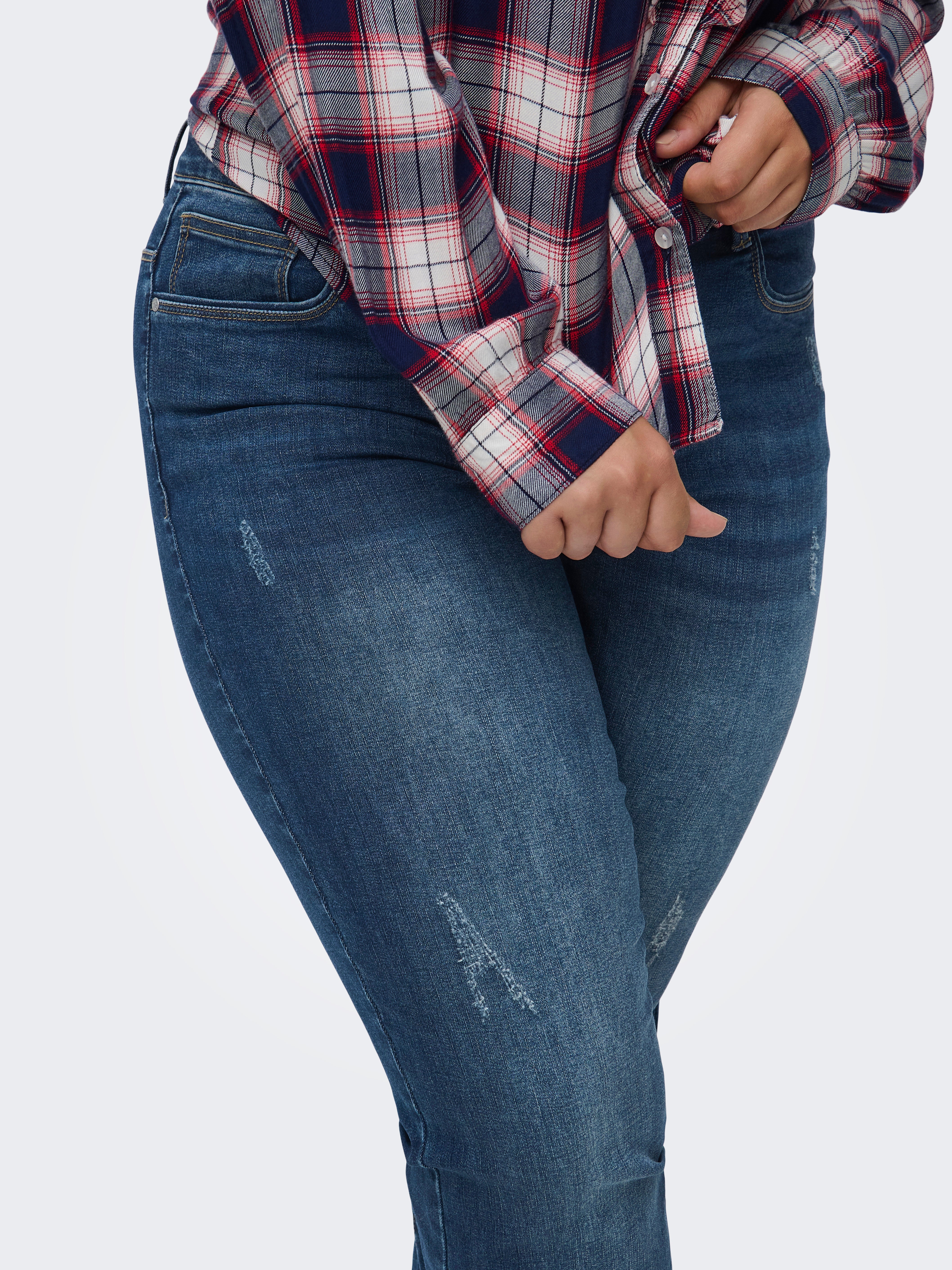 - Střih : Curvy džíny ve střihu Slim fit, které jsou přiléhavé kolem boků a na stehnech, ale mají rovné nohavice s trochu větším prostorem od kolen dolů