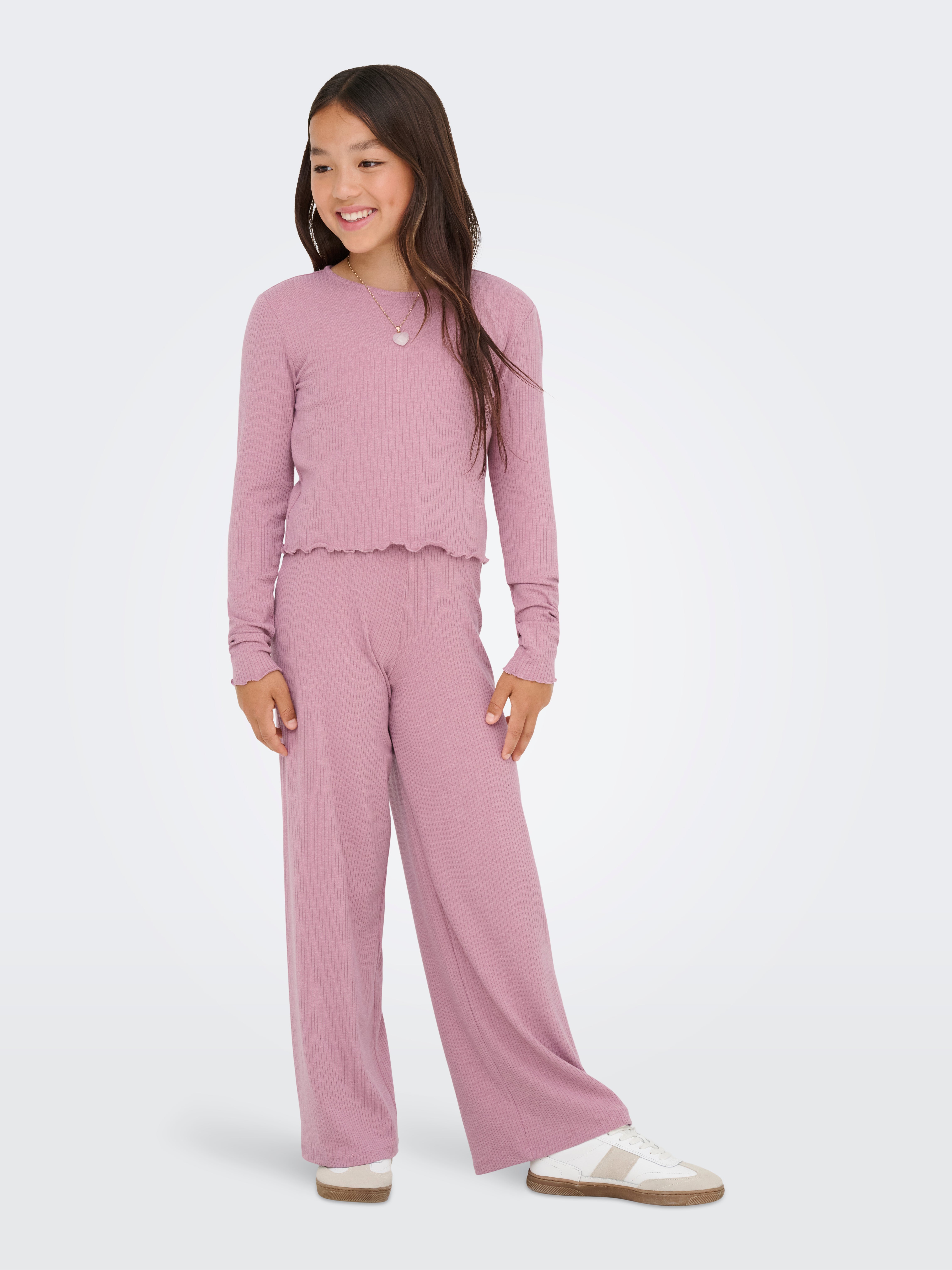 Kalhoty pro dívky od ONLY GIRLS kombinují pohodlí a styl tím nejlepším způsobem! Od pohodlných legín až po trendy chinos kalhoty, jsou ideální na hraní i do školy. Zkombinujte je s jednoduchým tričkem pro uvolněný, ale moderní vzhled, který vám zachová pohodlí po celý den.