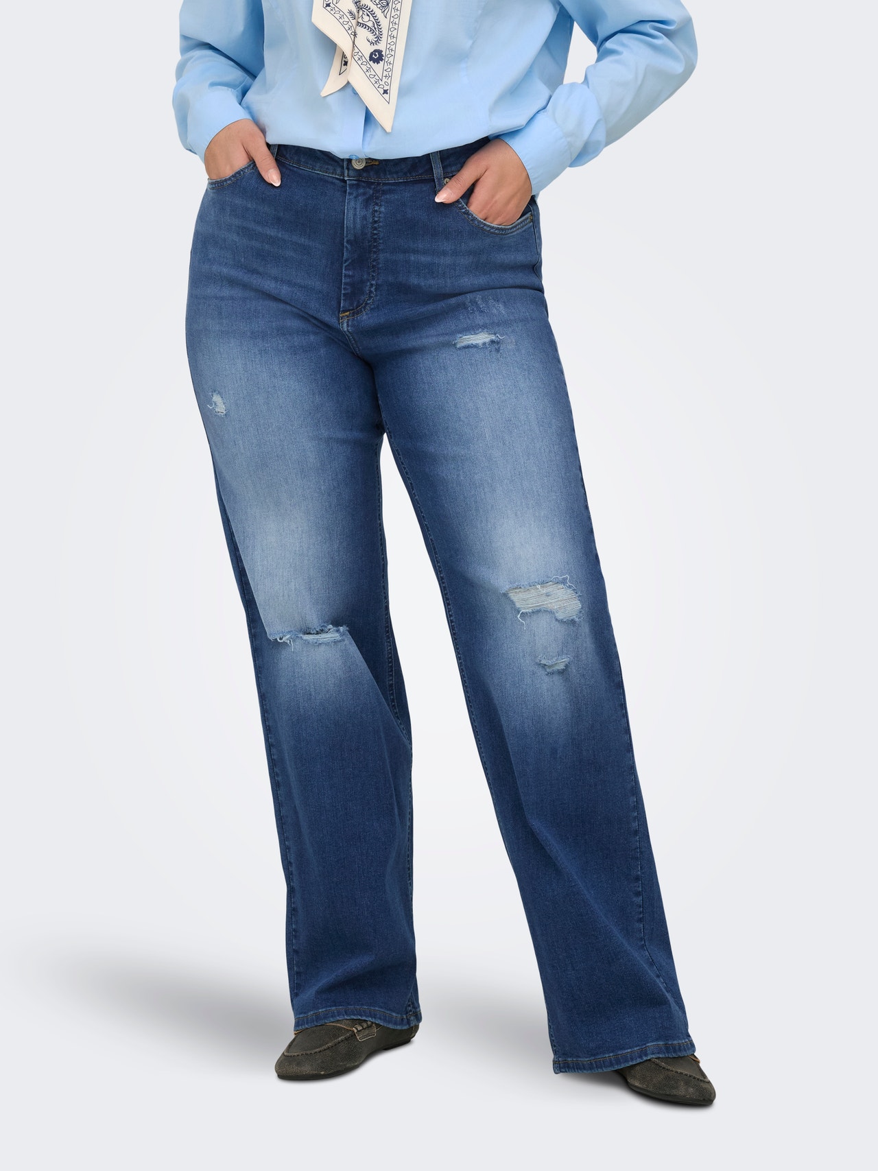 - Střih : Curvy džíny v širokém střihu Wide fit, které jsou navrženy s ohledem na pohodlí a mají velkorysý střih s velkým prostorem pro nohy od boků až ke kotníkům