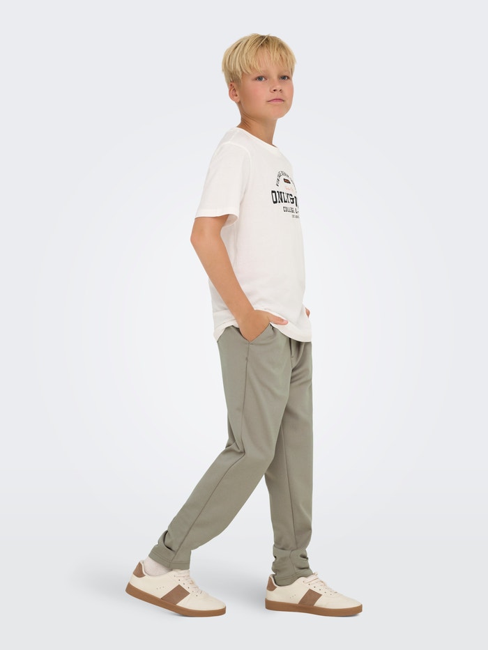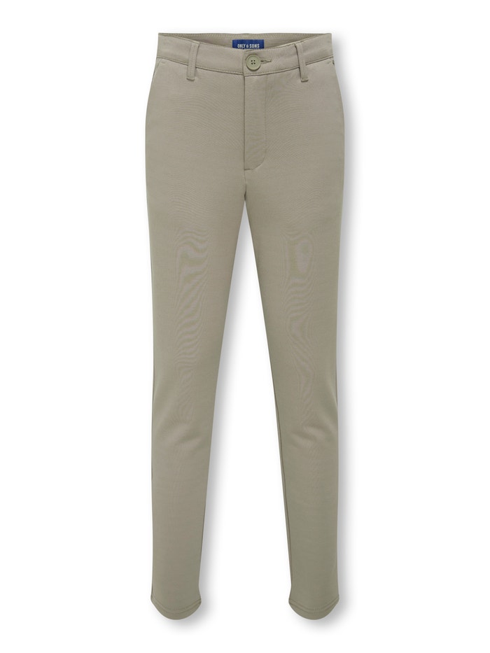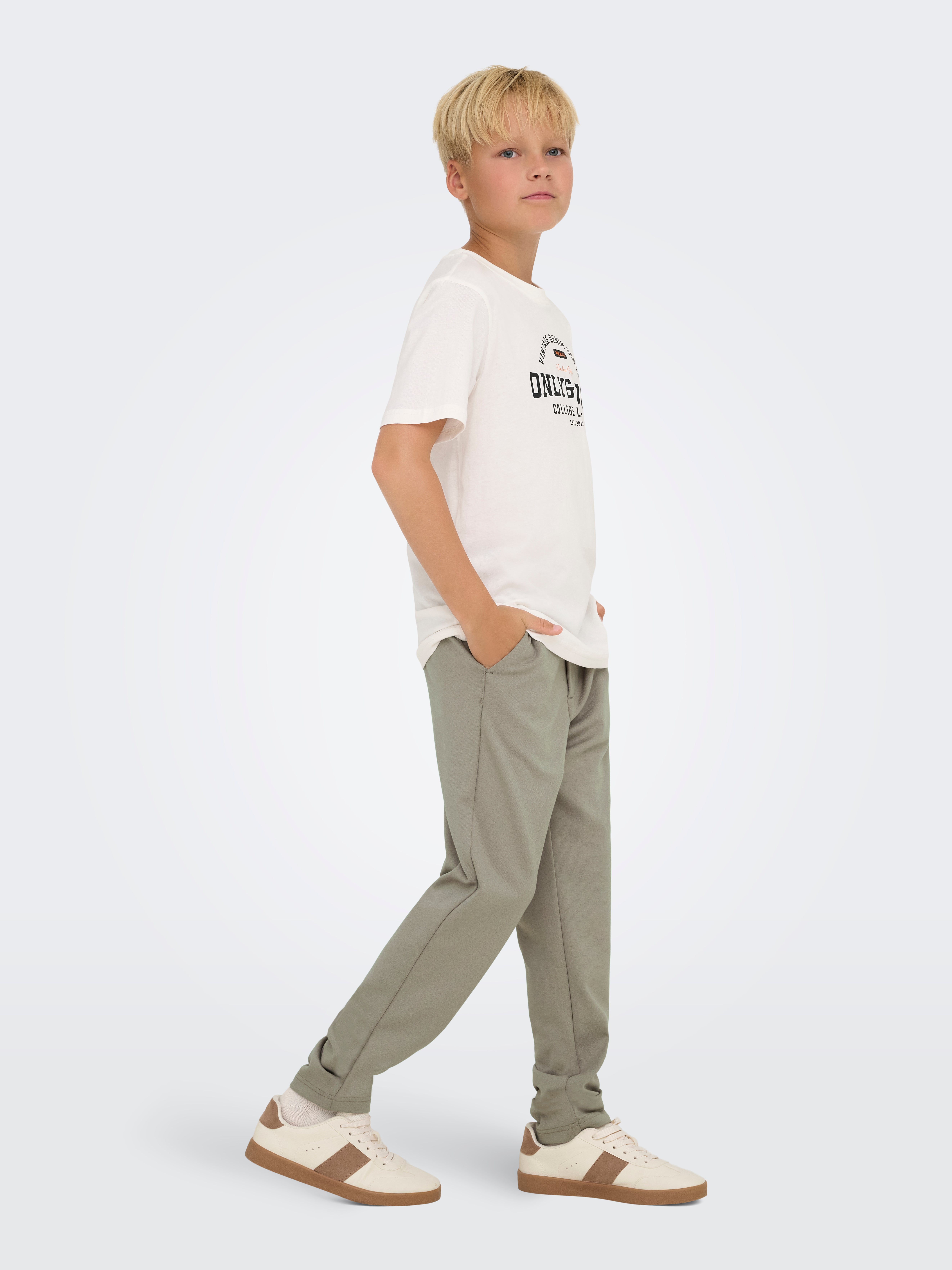 Kalhoty ONLY & SONS JUNIOR jsou pohodlné a trendy! Od uvolněných chinos kalhot až po cargo kalhoty jsou ideální pro aktivní chlapce, kteří chtějí sportovní vzhled. Inspirováno streetovým stylem a zaměřeno na funkčnost. Jsou ideální jak na hraní, tak na každodenní nošení. Zkombinujte je s tričkem nebo mikinou a získáte uvolněný a cool vzhled.