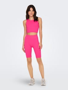 Tilføj komfort og coolness til din garderobe med styles, der er perfekte til langsomme weekender eller hverdagsaktiviteter. Rib er en type strik, som kendes på tydelige rækker og stor strækbarhed, der skaber et behageligt og tidløst look. ATHLEISURE er activewear på et højere niveau med stilfulde, sporty designs og bløde, præstationsforbedrede stoffer. - Produkttype : Cityshorts - Talje : Høj talje - Længde/størrelse : Knælængde - Detaljer : Sømløs - Pasform : Slim fit - Livsstil : Fitness, Fritid