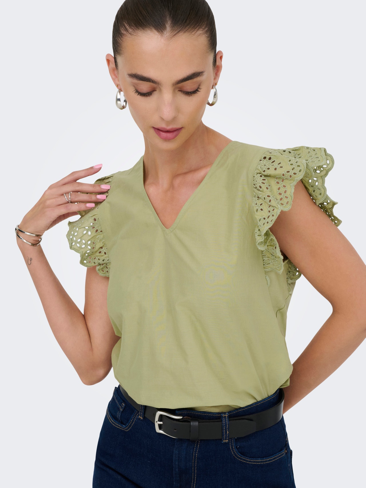 Forvandl dit hverdagsoutfit på et sekund ved at tilføje en feminin top, som sikrer et blødt, rent udtryk.