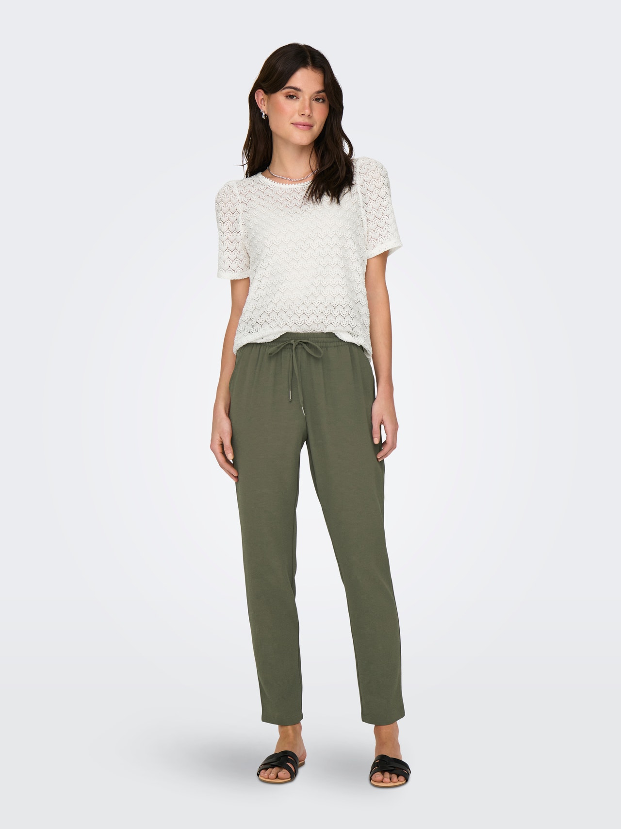 Fyld din garderobe op med smarte essentielle styles, såsom T-shirts og toppe, der er lette at matche med eksisterende styles. - Produkttype : Top - Hals : O-hals - Ærme : Korte ærmer - Lukning : Knaplukning - Detaljer : Flæsedetalje - Pasform : Regular fit