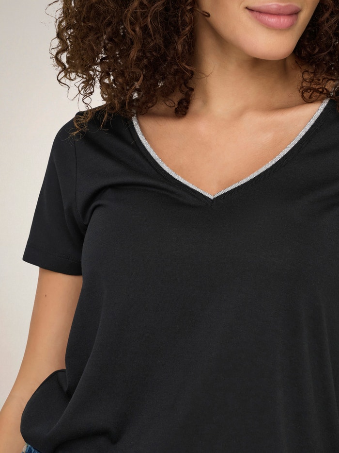 - Hals : V-hals