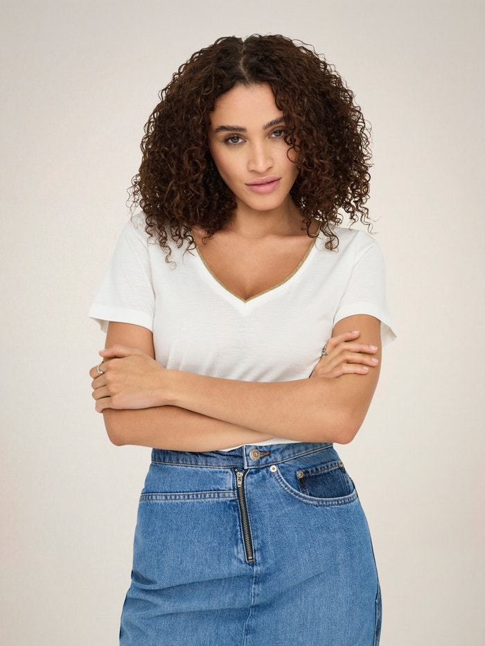 - Hals : V-hals