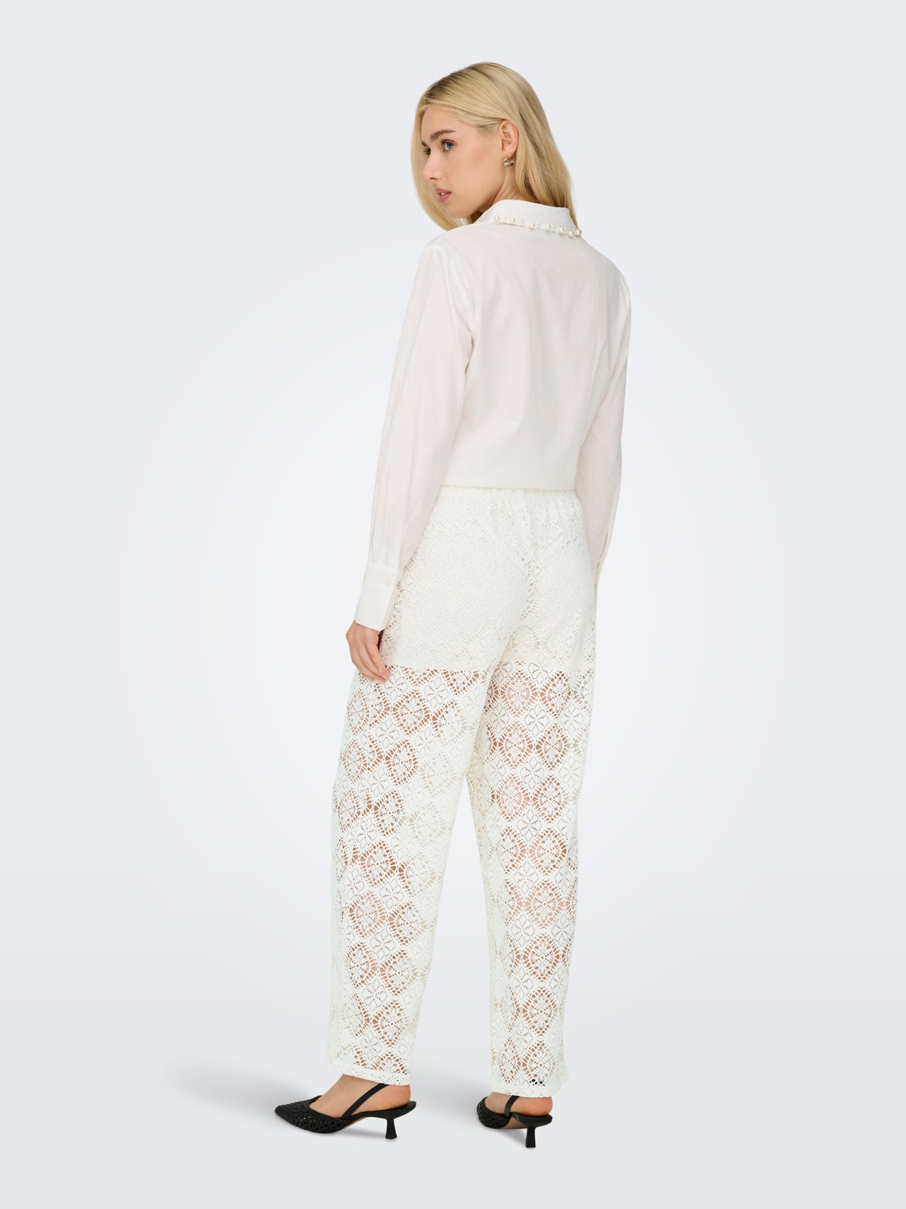 Blonde er et smukt, let materiale, der defineres af et åbent design og smukke mønstre.