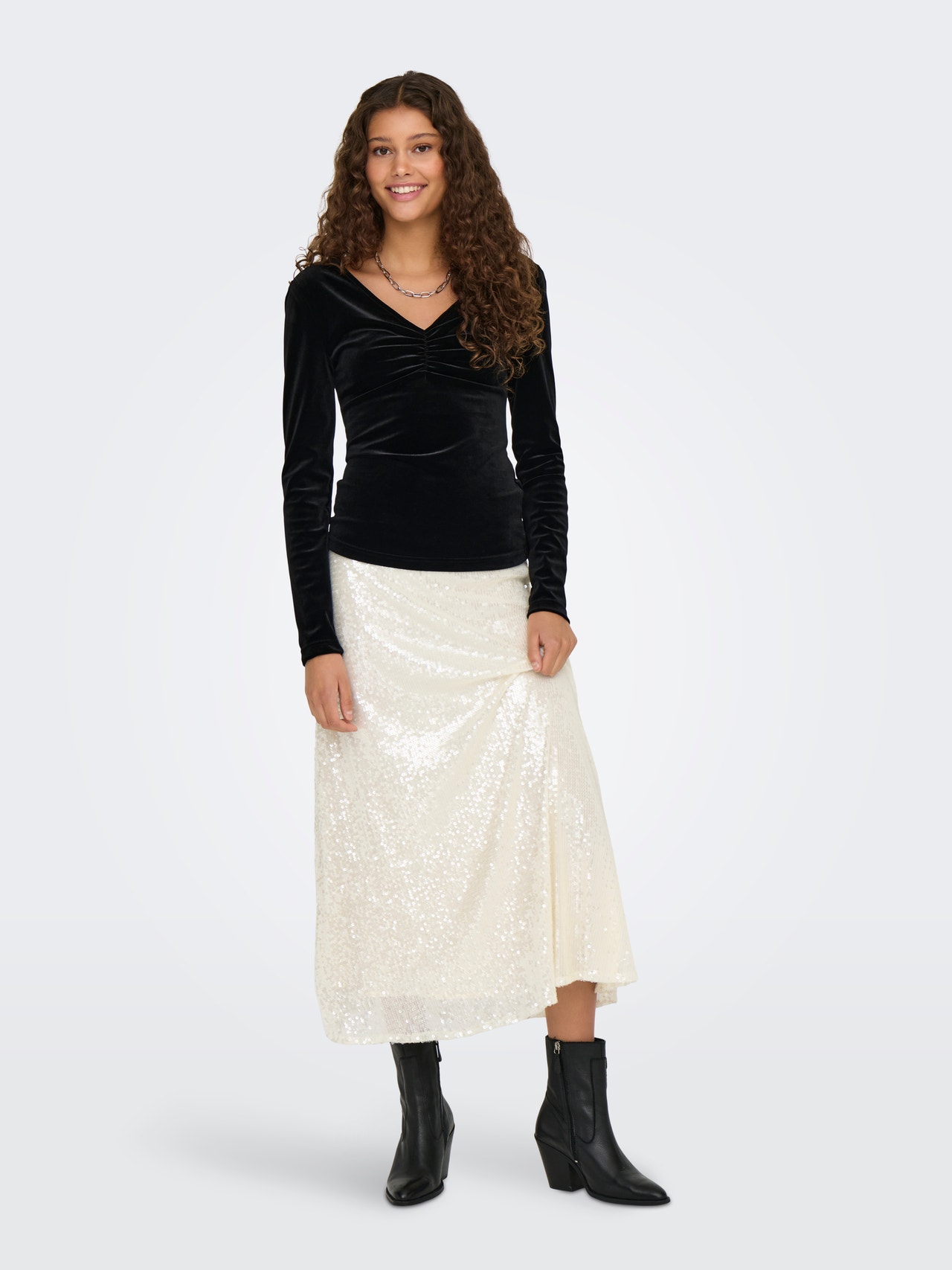 - Hals : V-hals