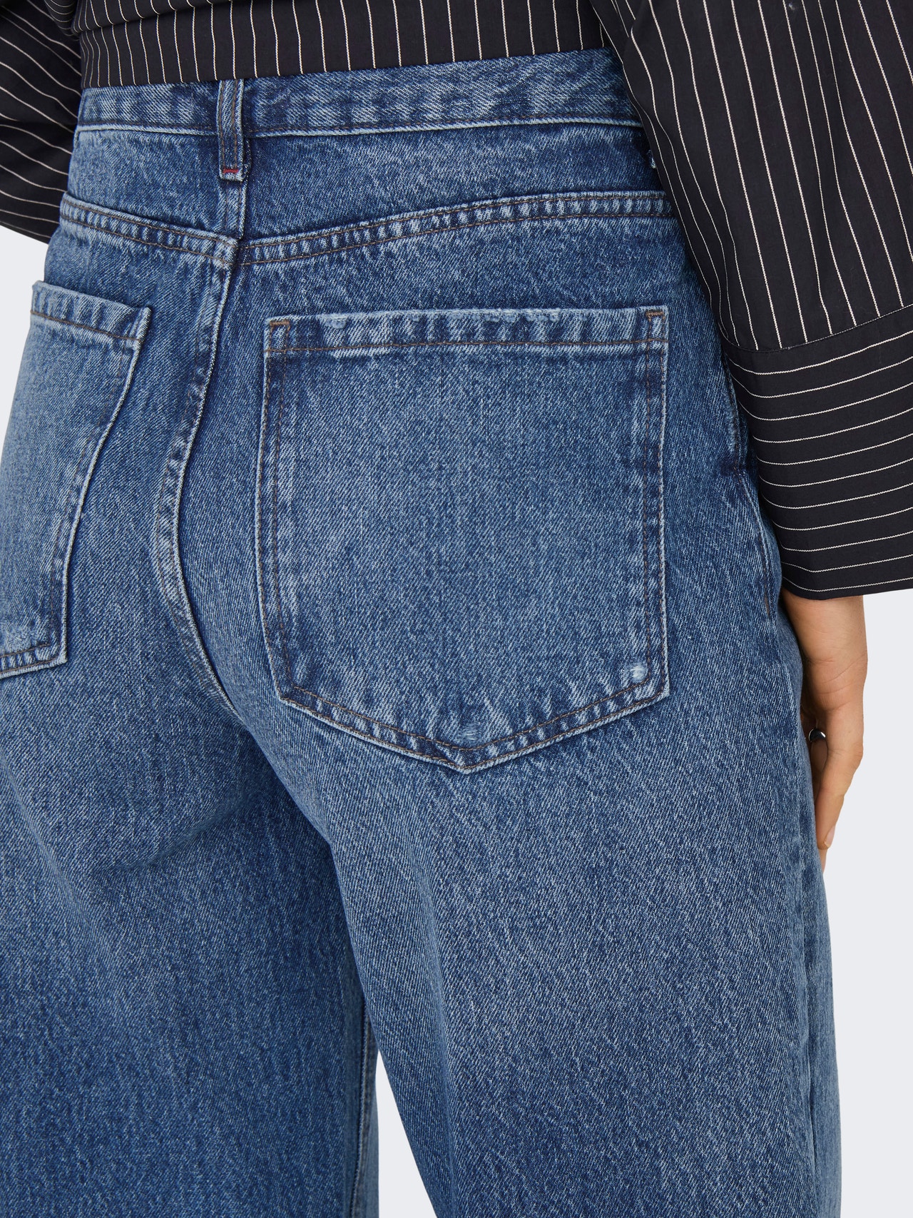 - Pasform : Denne stil med vide ben er designet med komfort for øje med masser af plads fra hofte til ankel