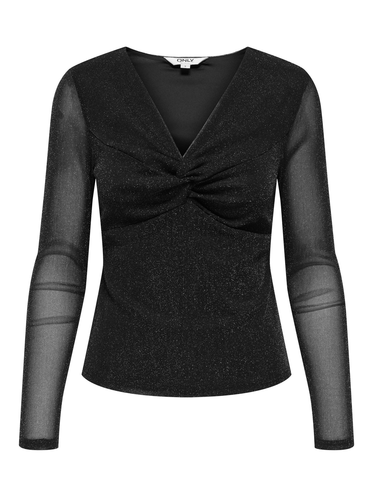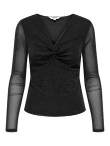 Fejr hverdag og fest i en sjov festtop - match den med din yndlingsnederdel eller bukser og skab et glamourøst look. Vævede materialer skabes ved at væve to eller flere garner sammen, hvilket skaber et tidløst look. - Produkttype : Top - Hals : V-hals - Ærme : Lange ærmer - Detaljer : Glimmerdetajle, Knudedetalje - Pasform : Slim fit