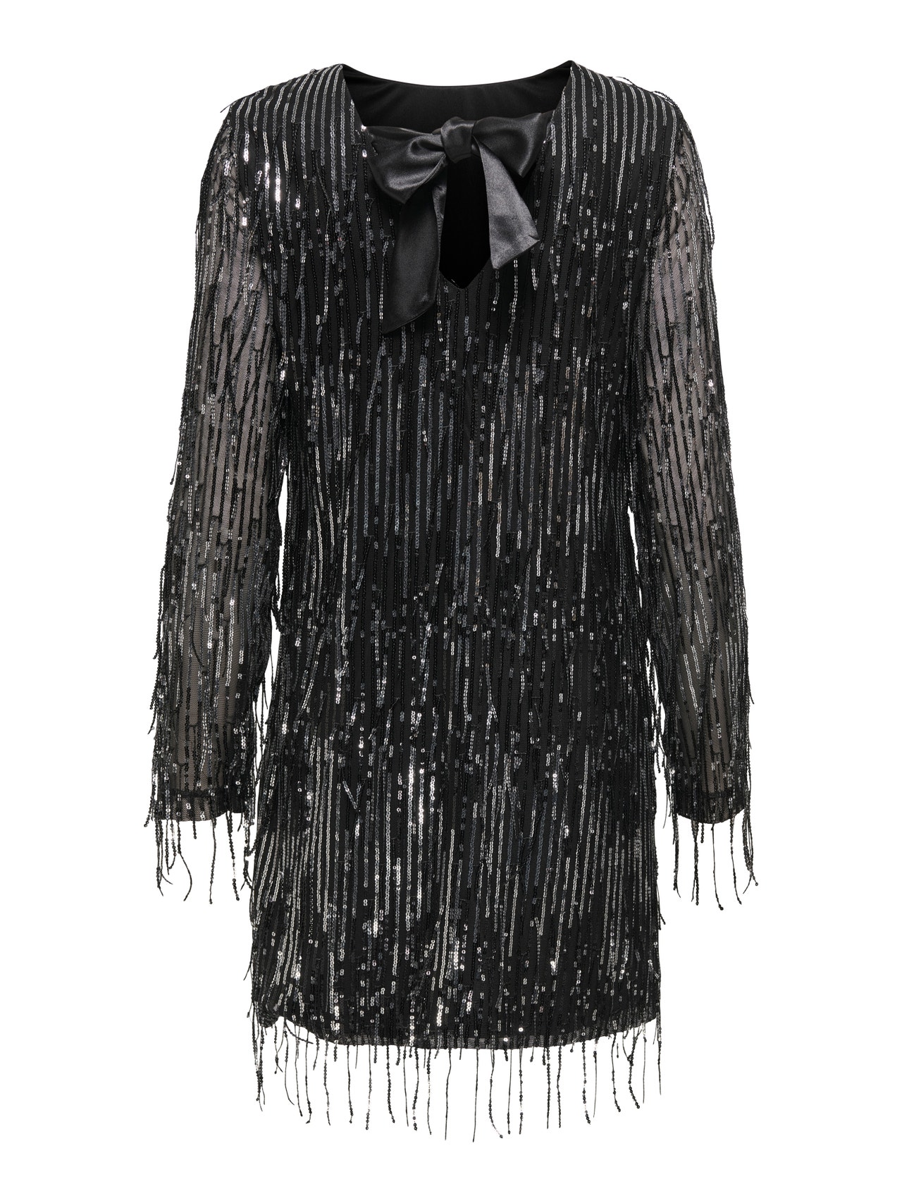 Imponer med en festkjole, der fanger alles blik, og sæt den sammen med smykker og høje hæle, som skaber det ultimative festlook. Vævede materialer skabes ved at væve to eller flere garner sammen, hvilket skaber et tidløst look. - Produkttype : Kjole - Hals : O-hals - Ærme : Lange ærmer - Detaljer : Sløjfedetalje, Pailletter - Pasform : Loose fit