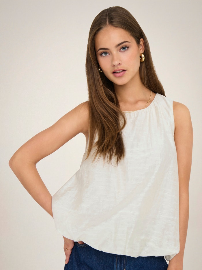 Forvandl dit hverdagsoutfit på et sekund ved at tilføje en feminin top, som sikrer et blødt, rent udtryk.