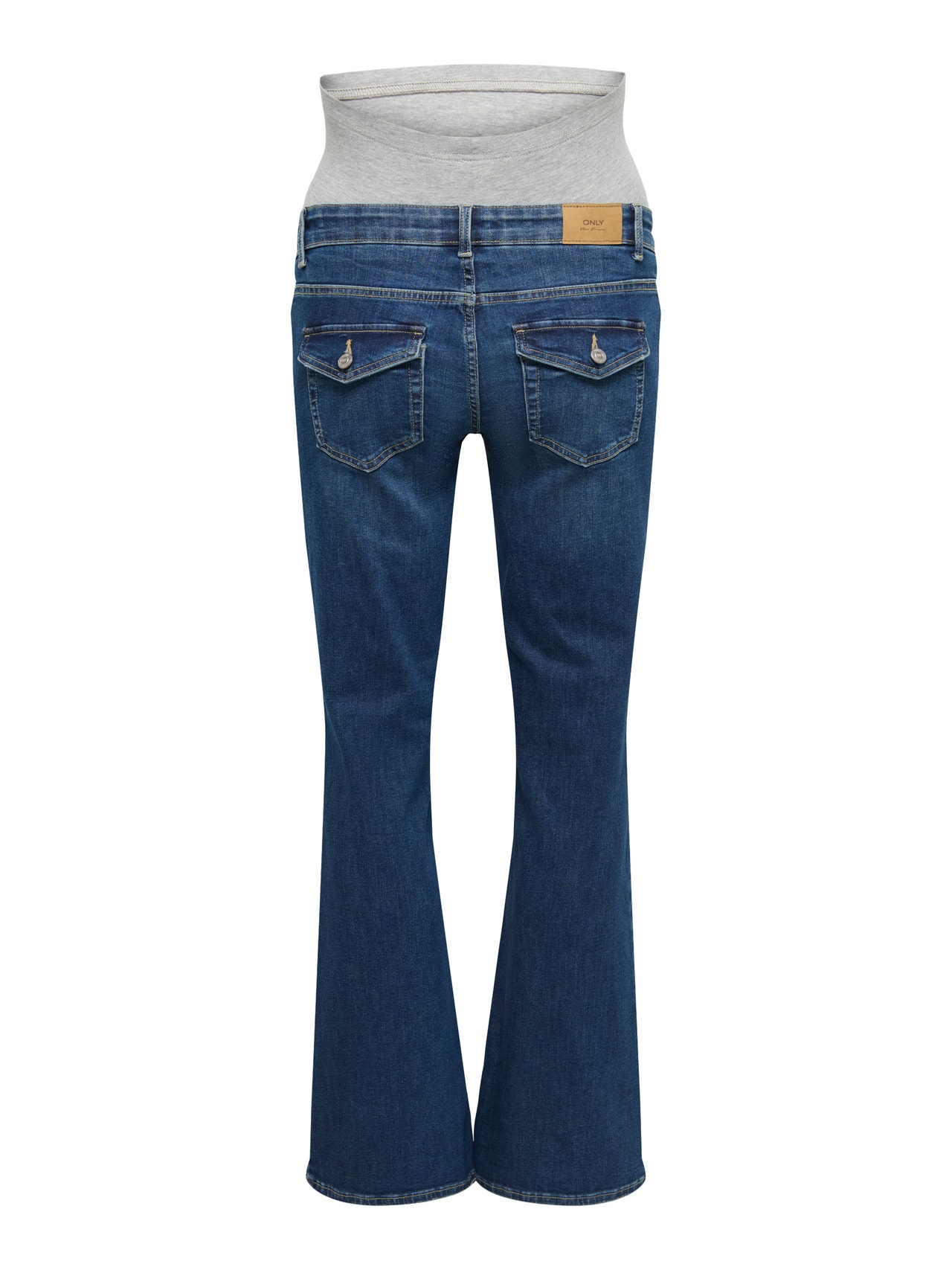 Hvis du er på udkig efter et feminint og flatterende look under graviditeten, er vores ventejeans i flared fit det perfekte valg. Disse jeans har en klassisk skinny pasform øverst med en subtil flare under knæet, der skaber en elegant, benforlængende silhuet. Det behagelige design over maven støtter blidt din mave, og den justerbare linning sikrer, at jeansene tilpasser sig din krops ændringer. Style dem præcis, som du vil - gennem hele din graviditet.