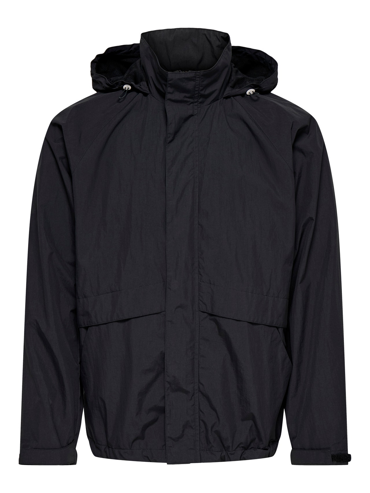 - Hals : Hætte med snoretræk