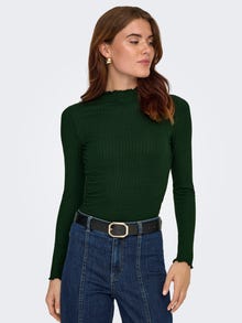 Verändere dein Alltagsoutfit in Sekundenschnelle, indem du mit einem femininen Oberteil einen weichen und schicken Akzent setzt. Rippstrick ist eine Strickart, die charakteristische Reihen und eine ausgiebige Dehnbarkeit besitzt, kreiert schnell einen bequemen und zeitlosen Look. JDY ist ein internationales Modelabel, das modebewussten Frauen eine vollständige Palette an bezahlbaren und trendigen Produkten bietet. - Produkttyp : Top - Hals : Hoch geschlossen - Ärmel : Langarm - Details : Rüschen - Passform : Slim Fit