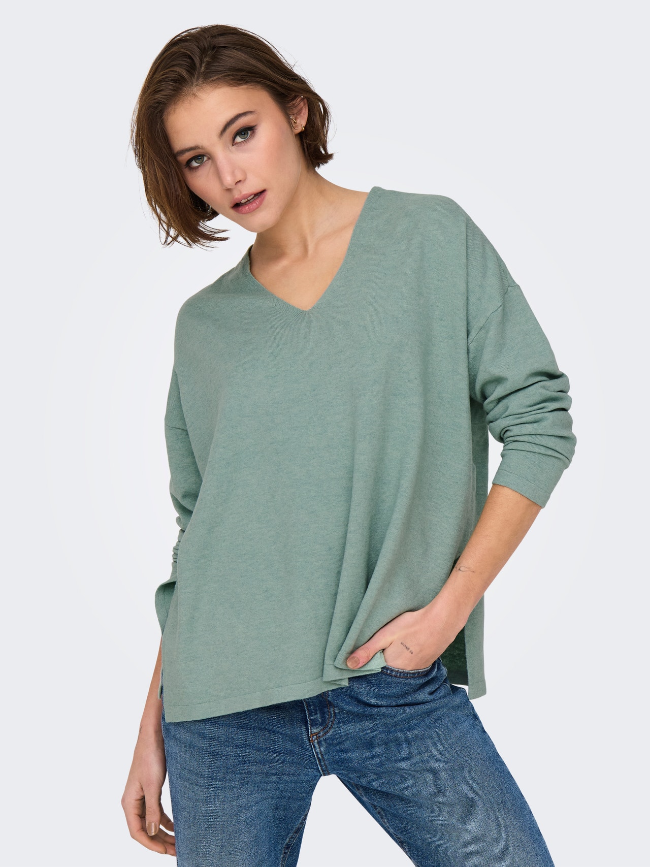 - Hals : V-Ausschnitt