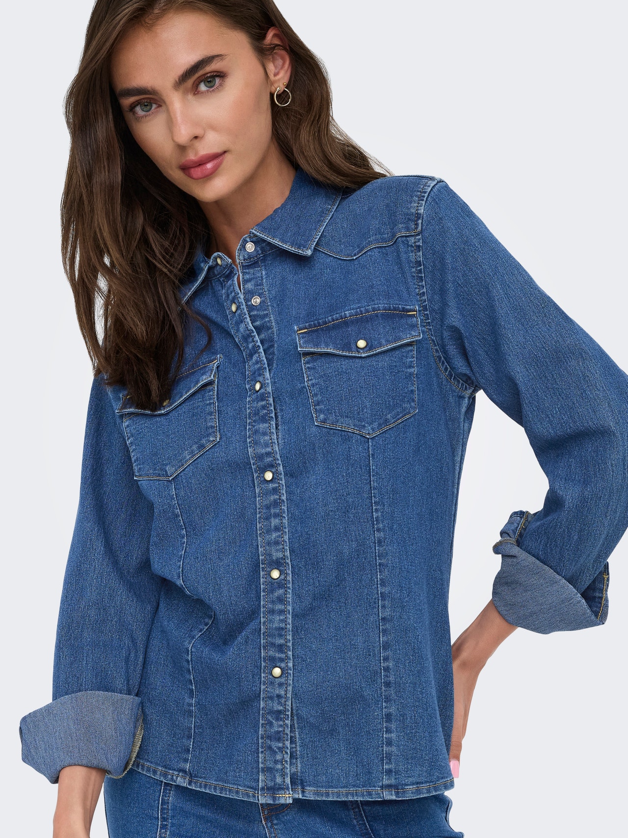Kombiniere deine Lieblingshose oder deinen Lieblingsrock mit einer neuen Jeansbluse zu einem zeitlosen Look oder experimentiere mit Double Denim für ein stylishes und cooles Outfit.