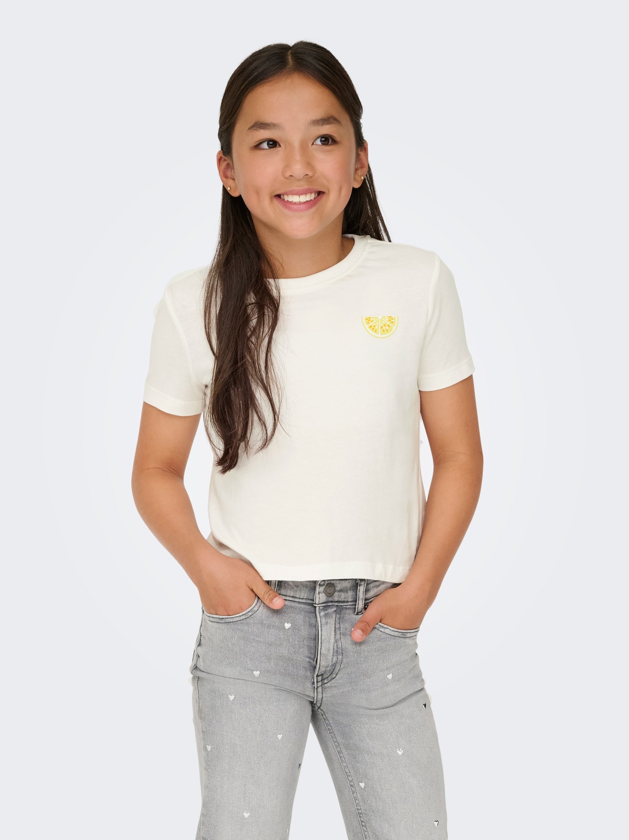 Aktualisiere die Garderobe mit einem coolen T-Shirt von ONLY GIRLS - das perfekte Oberteil für alltägliche Abenteuer! Dieser Stil verleiht ihm einen frischen und femininen Touch, ideal für Schule und Freizeit. Kombinieren Sie es mit Jeans und Turnschuhen für einen entspannten und coolen Look, der ihre Persönlichkeit ausstrahlt.