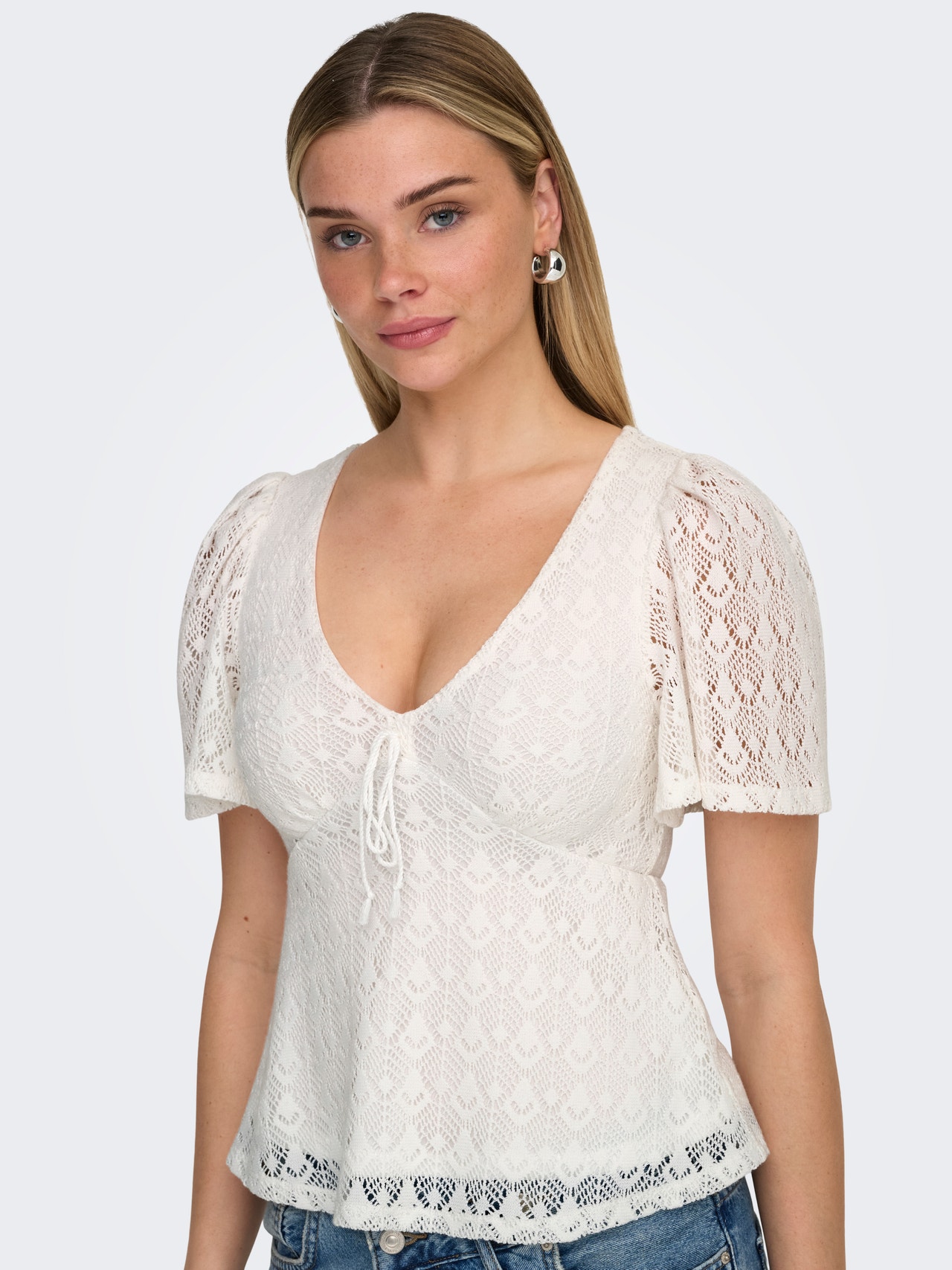 Verändere dein Alltagsoutfit in Sekundenschnelle, indem du mit einem femininen Oberteil einen weichen und schicken Akzent setzt.