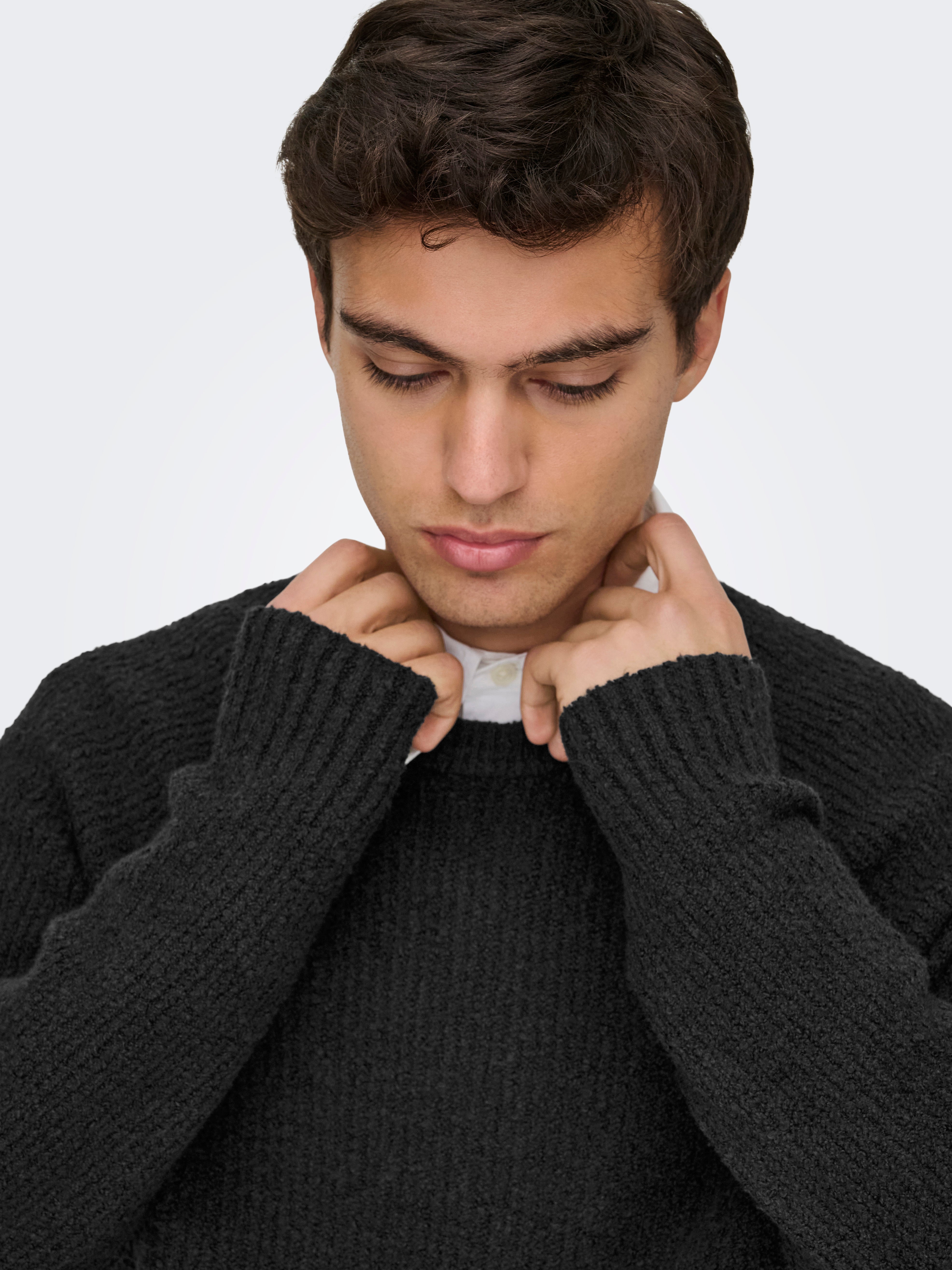 Strukturstrick zeichnet sich durch eine breite Palette von Mustern und Strukturen aus, die ein stilvolles, klares Aussehen schaffen.
