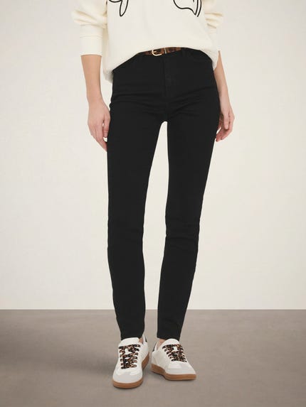 - Skinny Jeans. Skinny Jeans sind seit Jahren einer der beliebtesten Jeans Fits. Auch wenn sich die Trends ändern, bleiben Skinny Jeans ein fester Bestandteil der Denim-Welt. Dieser Jeans-Style zeichnet sich durch eine passgenaue Silhouette von der Taille bis zu den Knöcheln aus, die den Körperkonturen folgt und so einen schlanken Look erzeugt. Die meisten Skinny Jeans werden aus Stretch-Denim gefertigt. Dieser Stoff bietet Bewegungsfreiheit und Komfort und sorgt gleichzeitig dafür, dass die Jeans ihre Form behält. Aufgrund ihrer körperbetonten Passform sind Skinny Jeans die perfekte Wahl für alle, die eine flexible, schmale Jeans suchen, die sich angenehm trägt, ohne einzuengen. Skinny Jeans sind das perfekte Beispiel dafür, dass Denim zeitlos und modern sein kann. Diese Jeans sind nach wie vor besonders bei Frauen beliebt, die eine klare, definierte Silhouette bevorzugen.