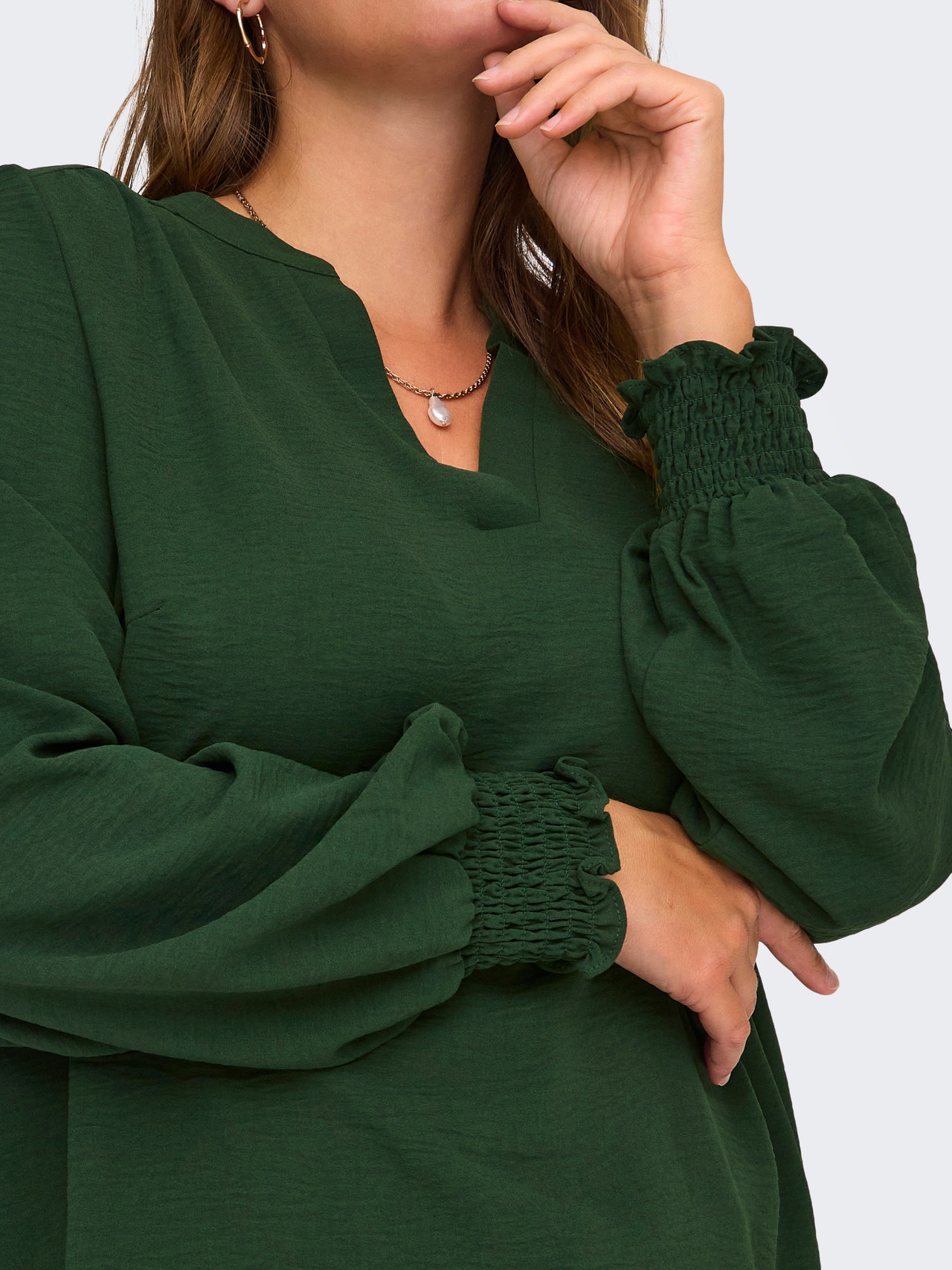 Verändere dein Alltagsoutfit in Sekundenschnelle, indem du mit einem femininen Oberteil einen weichen und schicken Akzent setzt. Gewebte Stoffe werden durch das Verweben von zwei oder mehr Garnen hergestellt und erhalten so ein zeitloses Aussehen. ONLY CARMAKOMA ist für Frauen mit Kurven, die Mode lieben und ihren persönlichen Stil selbstbewusst zum Ausdruck bringen. Die Kollektionen bieten modernen Denim, schmeichelhafte Passformen und Styles für jeden Anlass – von kantig und cool bis feminin und klassisch. Unsere Auswahl an Kleidung in Übergrößen ist so konzipiert, dass sie Ihre Kurven betont und Komfort bietet, damit sich jede Frau in Übergrößen in ihrem Look schön und selbstbewusst fühlen kann. Curve-Styles sind so designt, dass sie kurvigen Frauen perfekt passen.. - Produkttyp : Bluse - Hals : V-Ausschnitt - Ärmel : Langarm - Manschetten : Gesmokte Ärmelbündchen - Passform : Normal geschnitten