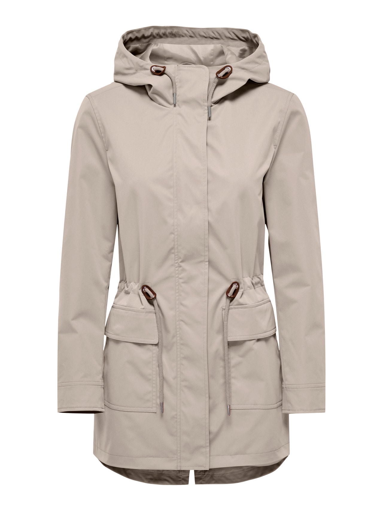 - Hals : Kapuze mit Kordelzug