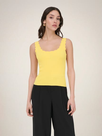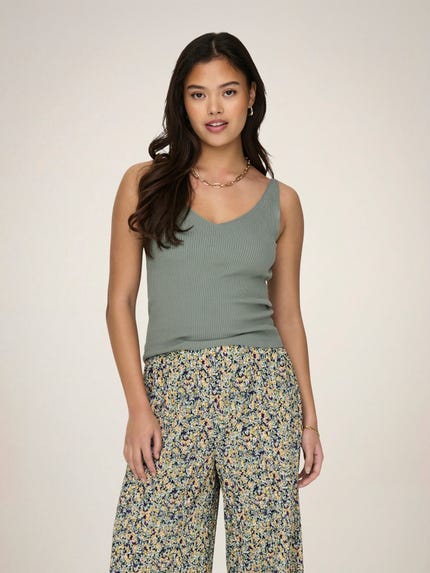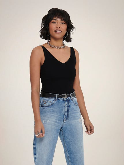 Tank Tops dürfen in keiner Garderobe fehlen. Sie sind eine tolle Option unter einem eleganten Blazer oder Cardigan. Du kannst sie aber auch alleine zu einem schicken Unterteil tragen und einen stylishen Look kreieren. Sie gehören zu den Basics, die jede Frau besitzen sollte, da sie problemlos die meisten Outfits ergänzen. Weiße und schwarze Tank Tops sind besonders beliebt, da diese neutralen Farben zu allem passen. Im Sommer hast du die Wahl zwischen schönen Farben wie Gelb, Blau oder Beige.