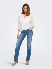 - Produkttyp : Top - Neck : V-Ausschnitt - Ärmel : 3/4 Arm - Ärmel : Voluminöser Armschnitt - Details : Rüschen für einen femininen Touch - Passform : Normal geschnitten