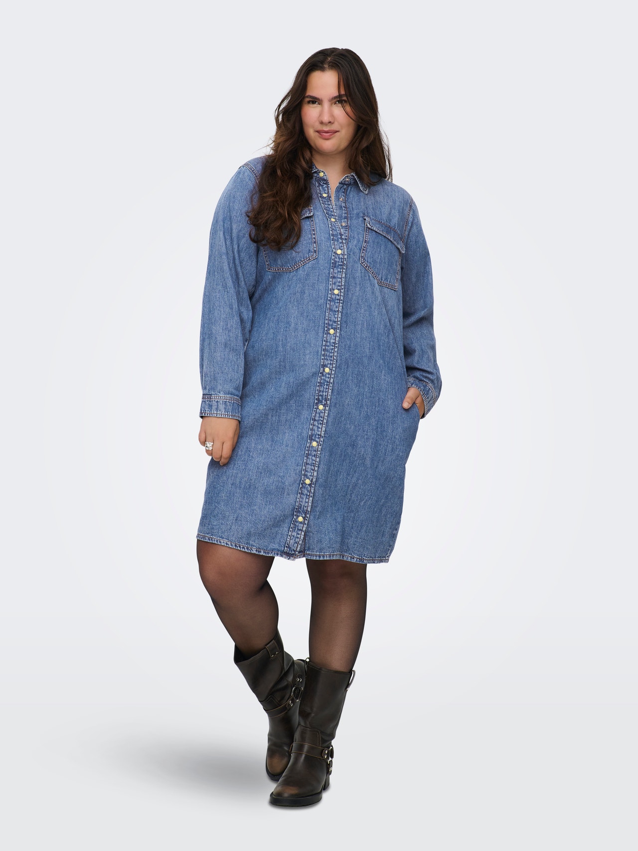 Style mit einem Jeanskleid, passenden Sneakern und einer leichten Jacke einen coolen Sommerlook oder kombiniere im Winter das Kleid mit einer Strumpfhose, Stiefeln und Strick.