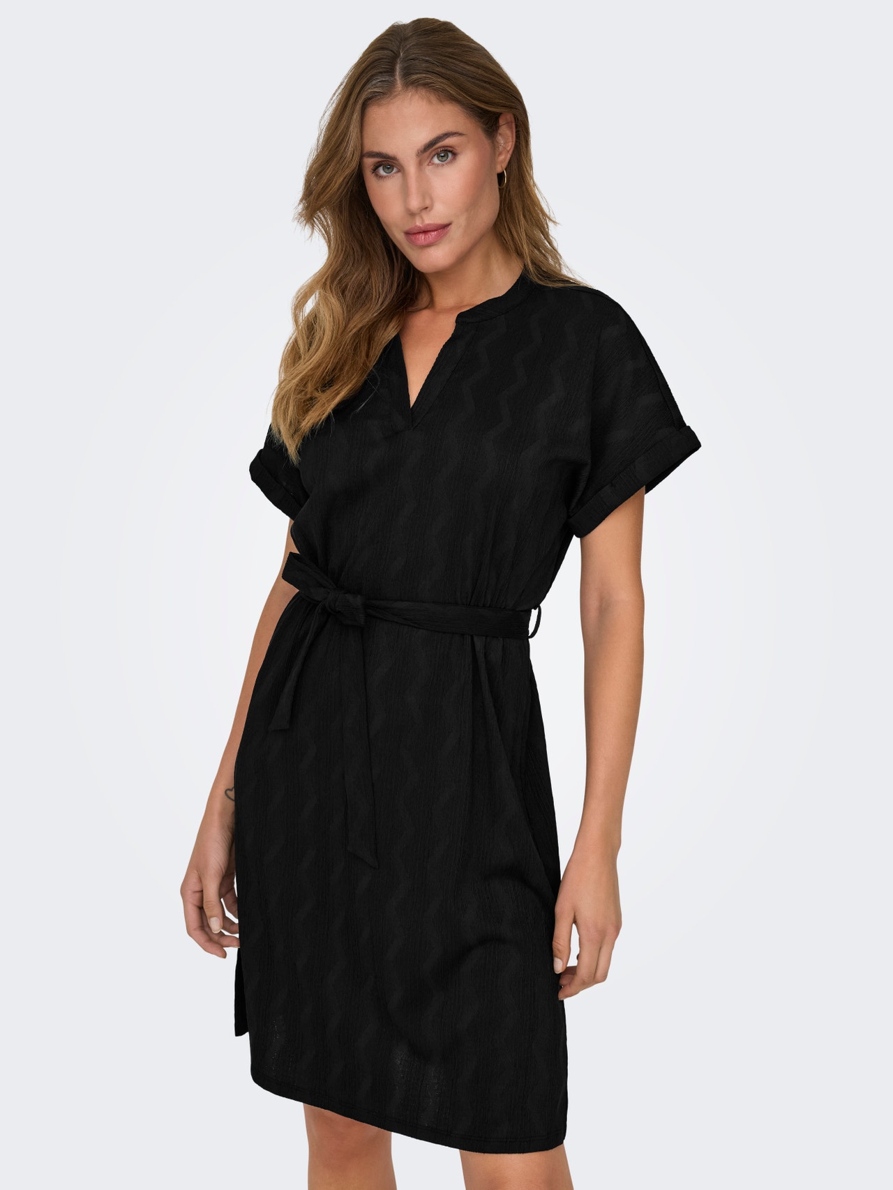 Ob Gartenparty, Abendveranstaltung oder Dinner im Restaurant, dieser festliche Style ist die perfekte Wahl. - Produkttyp : Kleid - Hals : V-Ausschnitt - Ärmel : Kurzarm - Länge/Größe : Kurz - Details : Gürtel in der Taille - Passform : Normal geschnitten