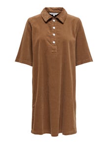 Mit einem einfach zu stylenden Alltagskleid bist du bereit für die Arbeit, die Schule und alles andere. Cord ist ein robusteres Material, das für seine geriffelte und samtige Oberfläche bekannt ist, die ein weiches Gefühl und ein zeitloses Aussehen erzeugt. - Produkttyp : Kleid - Hals : Hemdkragen - Ärmel : Kurzarm - Verschluss : Knopfleiste - Passform : Locker geschnitten