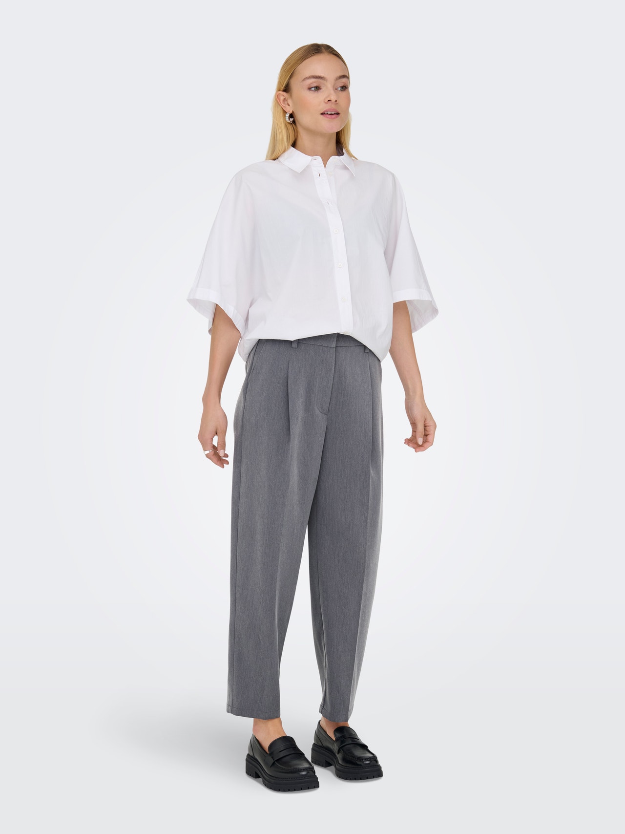 Kreiere mit einer Anzughose, einer passenden Bluse und Pumps einen zeitlosen Look oder style die Hose mit Sneakern und einem T-Shirt zu einem modernen, coolen Outfit. Gewebte Stoffe werden durch das Verweben von zwei oder mehr Garnen hergestellt und erhalten so ein zeitloses Aussehen. JDY ist ein internationales Modelabel, das modebewussten Frauen eine vollständige Palette an bezahlbaren und trendigen Produkten bietet. - Produkttyp : Hose - Verschluss : Haken- und Ösenverschluss mit Reißverschluss - Taschen : Seitentaschen, Ziertaschen hinten - Taille : Mittlere Taille - Länge/Größe : Knöchellang - Details : Plissee-Detail, Gürtelschlaufen - Passform : Weiter Beinschnitt