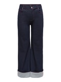 LDS HW WIDE FOLD-UP JEANS WITH RED CONTRAST STITCHES