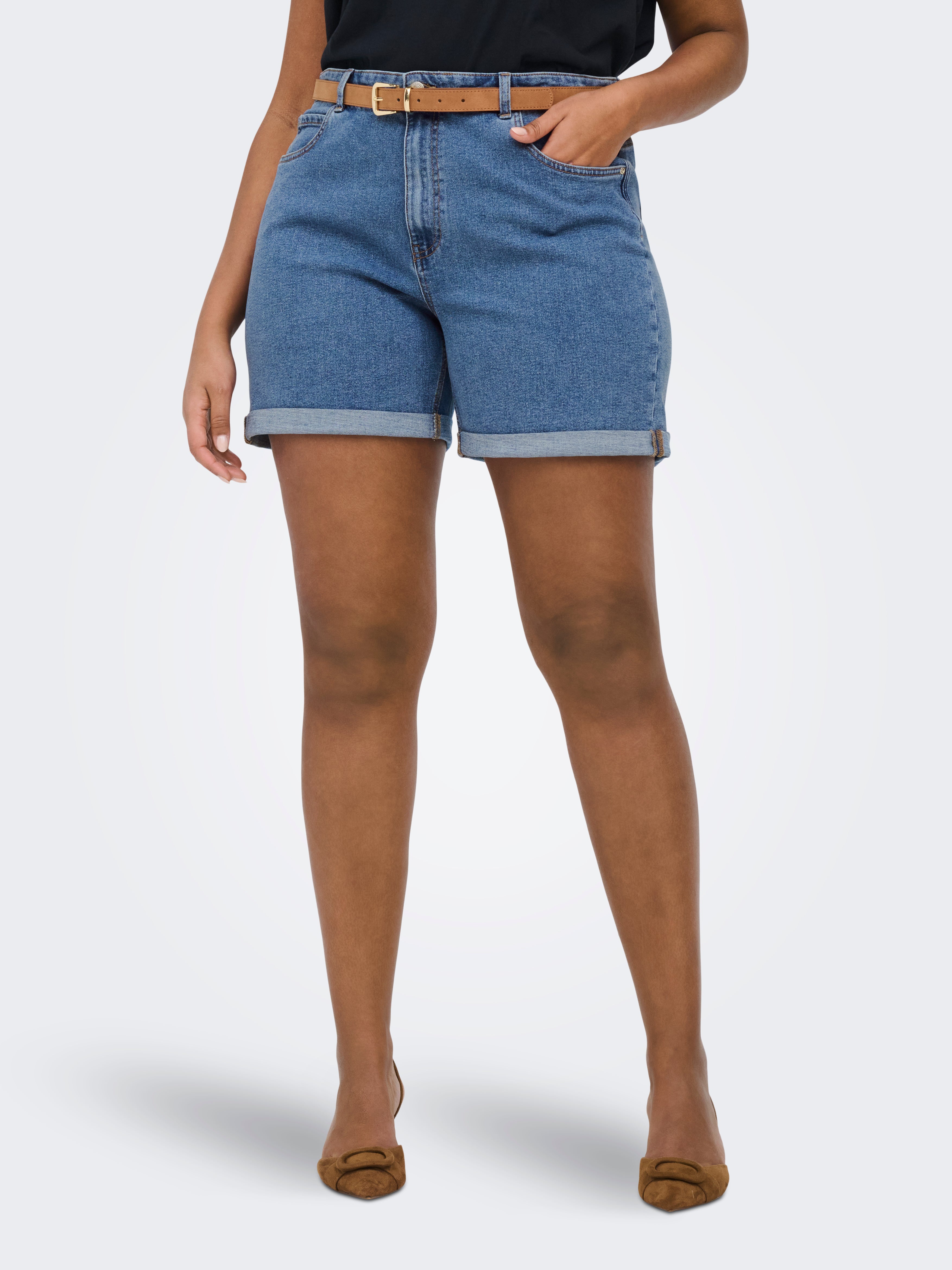 CARVEGA Hohe Taille Normal geschnitten Jeans-Shorts