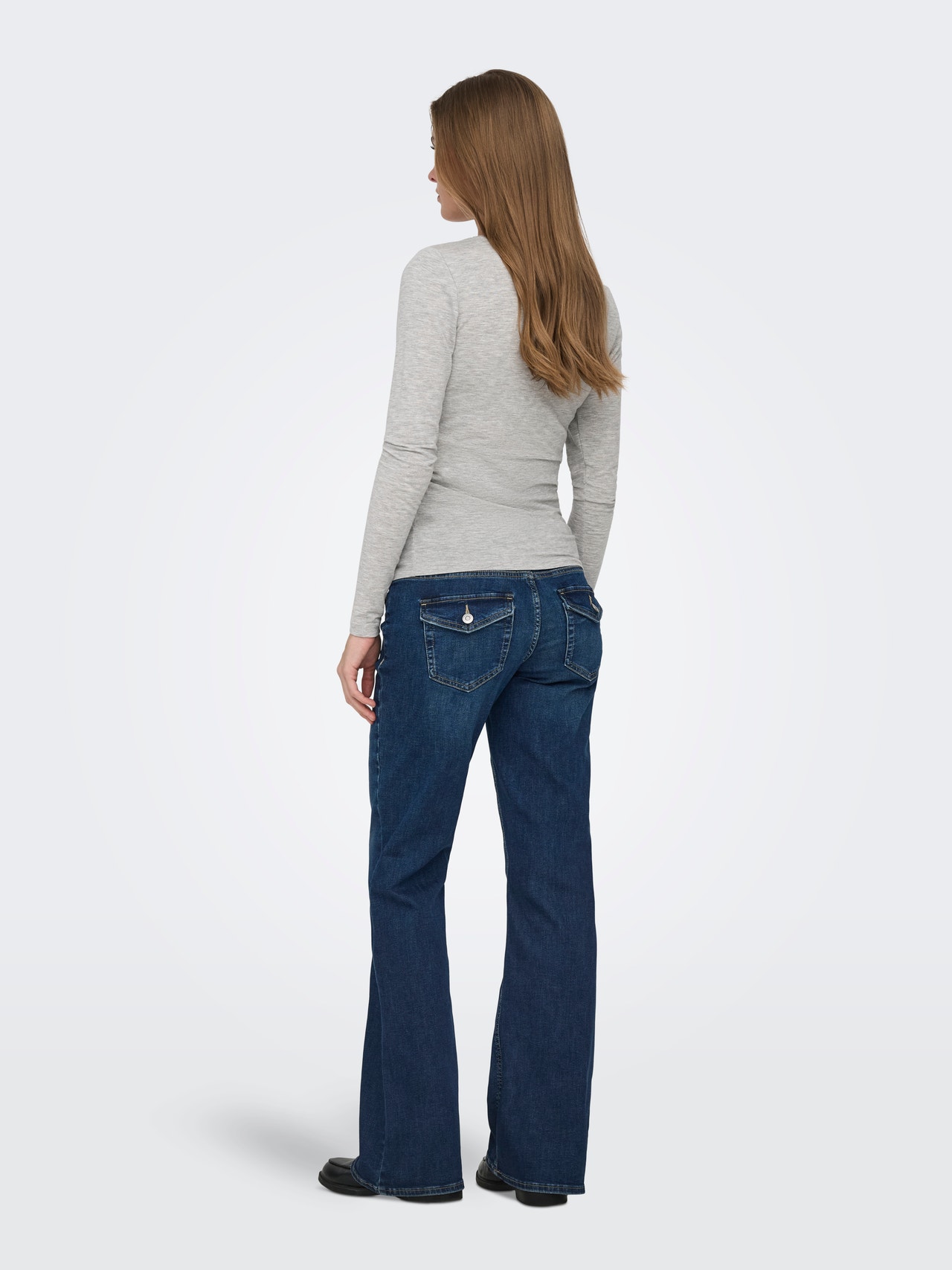 Wenn du auf der Suche nach einem femininen und schmeichelhaften Look in der Schwangerschaft bist, sind unsere Umstandsjeans in ausgestellter Passform die perfekte Wahl. Diese Jeans hat eine klassische Skinny-Passform an der Oberseite mit einem dezenten Flare-Effekt unterhalb des Knies, der eine elegante, beinverlängernde Silhouette erzeugt. Das bequeme Over-Bump-Design stützt Ihren Bauch sanft und der verstellbare Bund sorgt dafür, dass sich die Jeans an die Veränderungen Ihres Körpers anpasst. Stylen Sie sie genau so, wie Sie es möchten – während Ihrer gesamten Schwangerschaft.