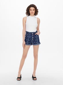 Whether tight or loose, short or long, light or dark denim shorts are essential in any wardrobe. - Product Type : Paperbag shorts - Closing : Button fastening - Pockets : Front pockets, Coin pocket, Back pockets - Waist : Mid waist - Length/Size : Short - Leg details : Fold-up hems - Extra details : Belt loops, Elasticated waist - Fit : Regular Fit